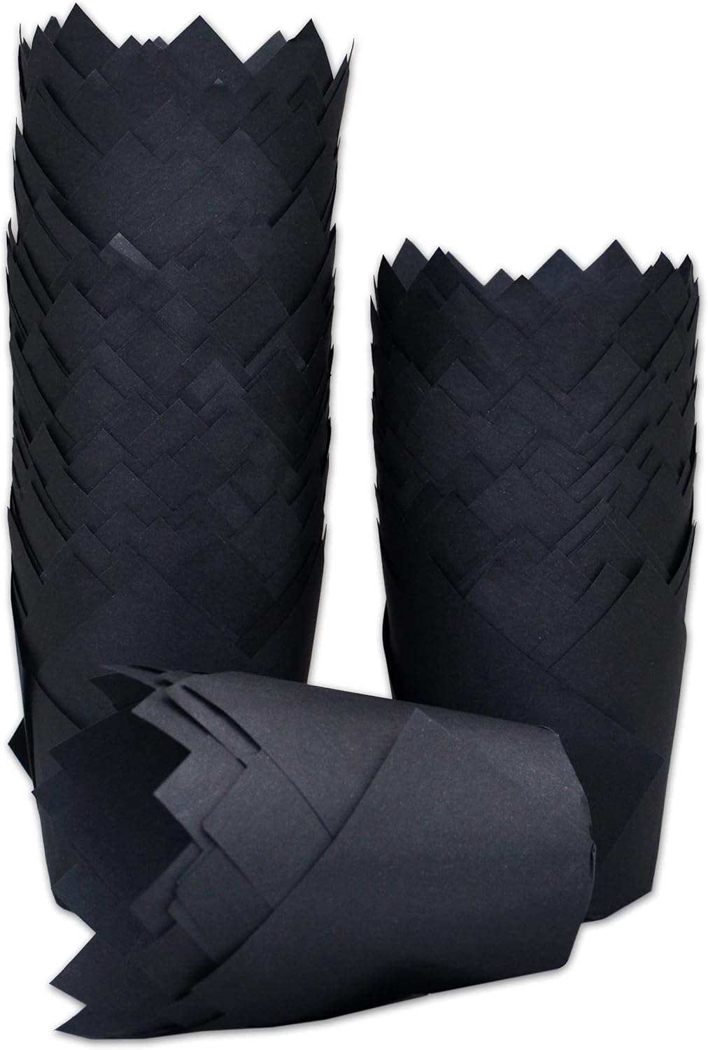 Black color Large size Tulip Baking Cups 2-1/4"(Base diameter) x 4"(Wall height) Parchment paper baking cupcake Muffin liners, Case of 130 pcs