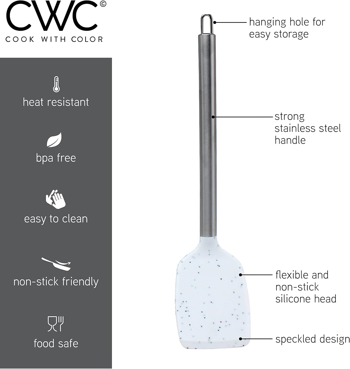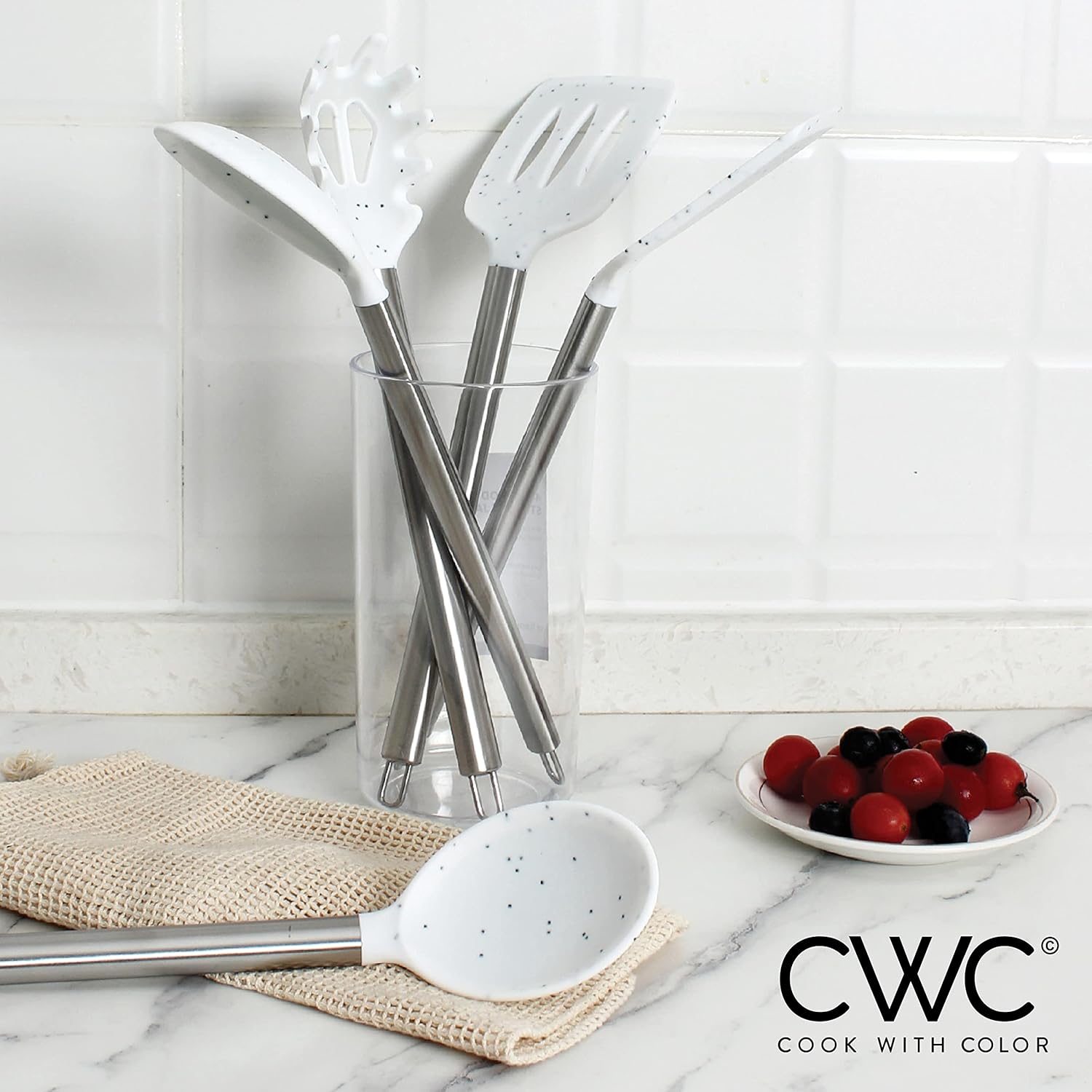 COOK WITH COLOR Silicone Cooking Utensils, Kitchen Utensil Set, Easy to Clean Silicone Kitchen Utensils, Cooking Utensils for Nonstick Cookware, Kitchen Gadgets Set, 5 Pieces, Speckled White