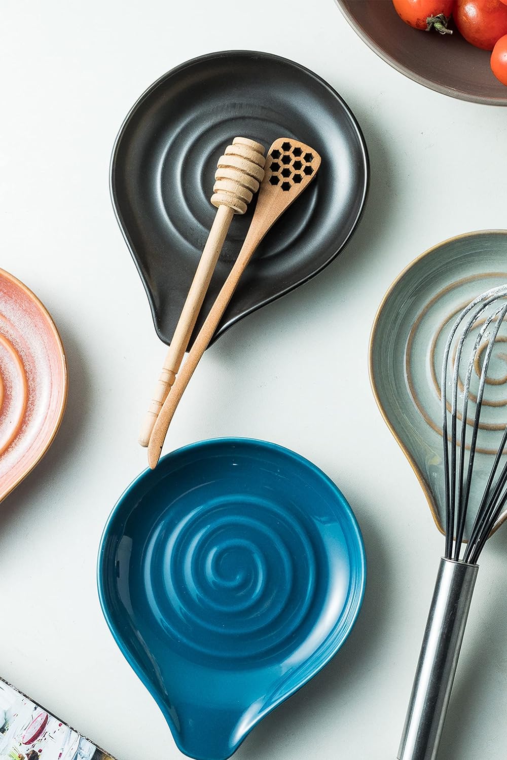 - Made of heavy and sturdy food grade ceramic, this kitchen spoon rest is designed to withstand heavy-duty use and heat-resistant, preventing scratches from your knives and forks.