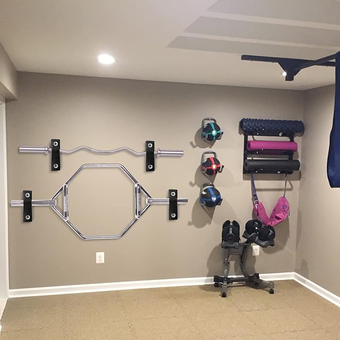 - This two separate bar storage suits for home gym, basement; Compatible with Weightlifting Bar, Olympic Bar, Standard Bar, CF Bar, Deadlift Bar, Multi Grip Bar, Trap Bar, and other workout weight bars