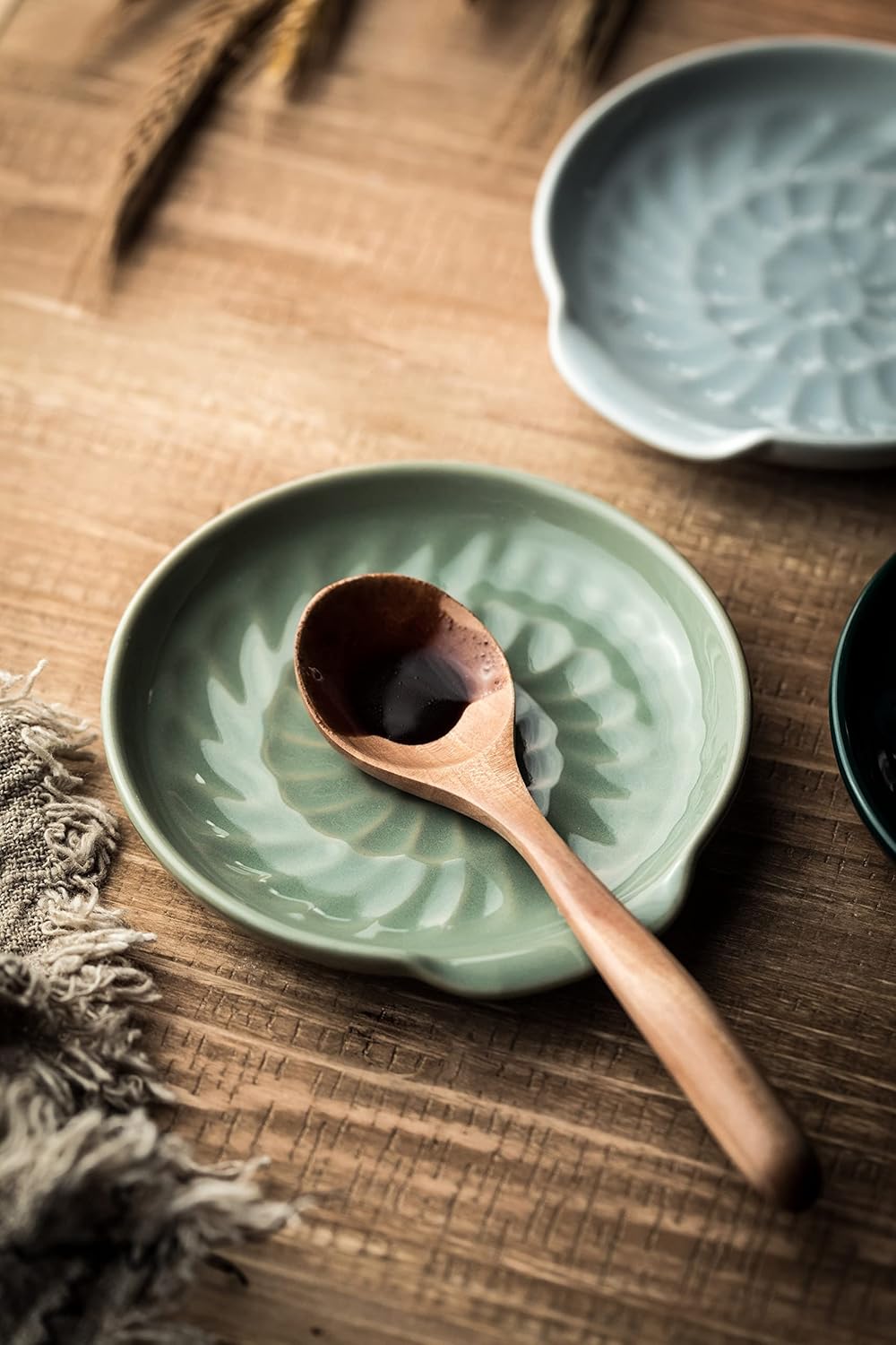 - Green spoon rest will easily complement any kitchen décor style. No need to sacrifice style for function, the unique spiral pattern design and versatility go hand in hand. Add a classic touch to any dining area with this kitchen stuff
