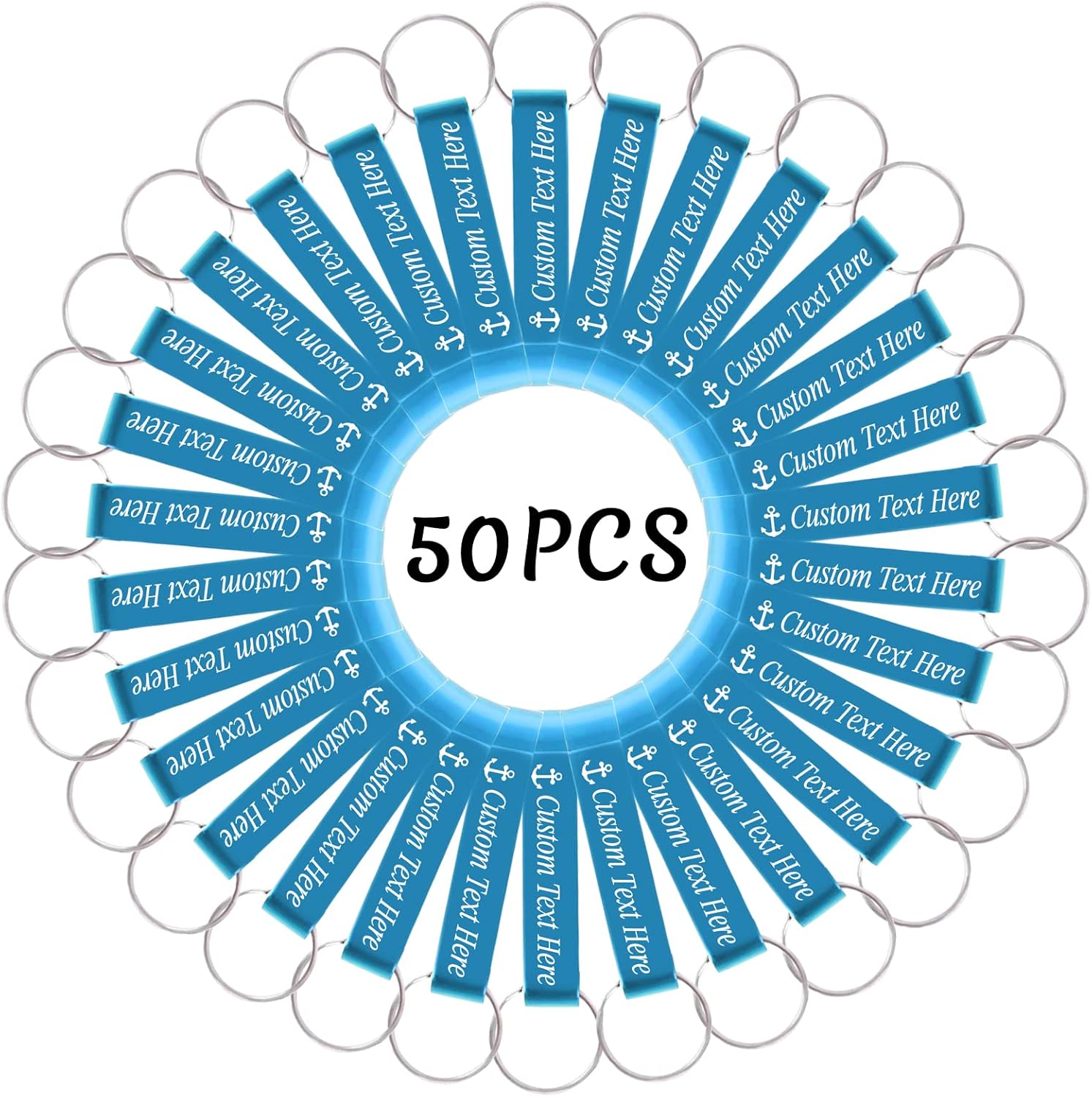 50PCS Personalized Bottle Opener Keychain Bulk Custom Beer Bottle Opener with Logo Text Engraved Wedding Bottle Opener Favors Customized Gifts for Guests Baby Shower Birthday Party-Sky Blue