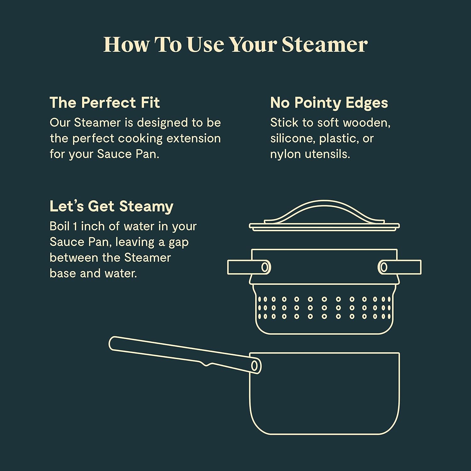 - STEAM YOUR FOOD TO PERFECTION: Steam your way to culinary greatness inside our Sauce Pan & Dutch Oven. Experience healthier at-home steaming at every portion size — from veggie sides to dim sum, and beyond.