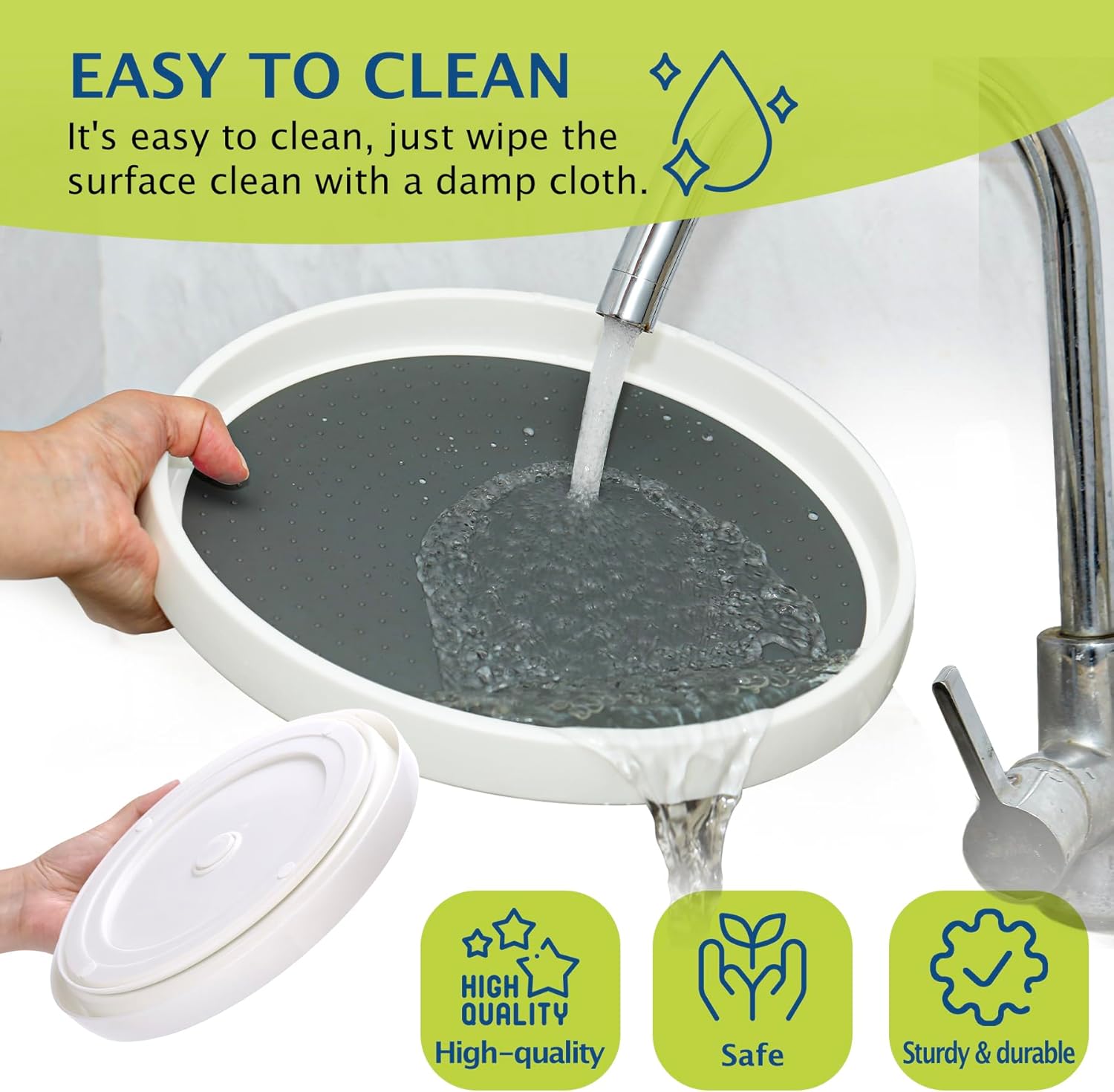 - Durable & Easy to Clean: These lazy susans are made of high quality durable shatter-resistant plastic. Hand wash recommended and dry completely. In order to protect the service life of the turntable organizer, please dry naturally without the dryer. Make sure the size of the lazy susan organizer base and edge before purchasing.
