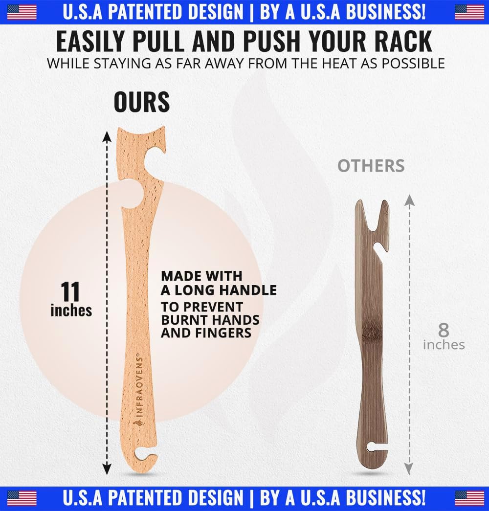 Wooden Oven Rack Puller Stick, Push Pull Tool with Longer Handle Ideal for Kitchen Oven, Convection and Toaster Ovens, Air Fryer and Small Kitchen Appliances by INFRAOVENS