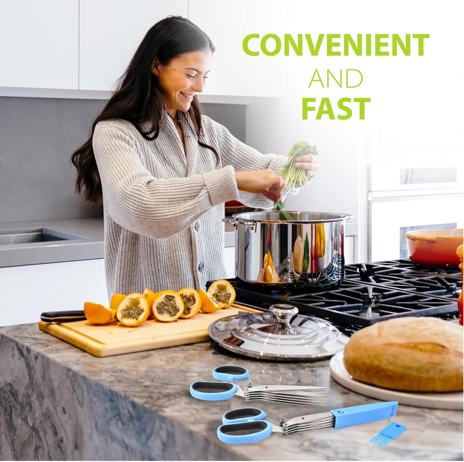 - Effortless Herb Chopping with 5 Sharp Blades - SASACIA herb scissors feature five stainless steel blades to cut herbs, lettuce, cilantro, and green onions evenly in seconds, saving you time in the kitchen.