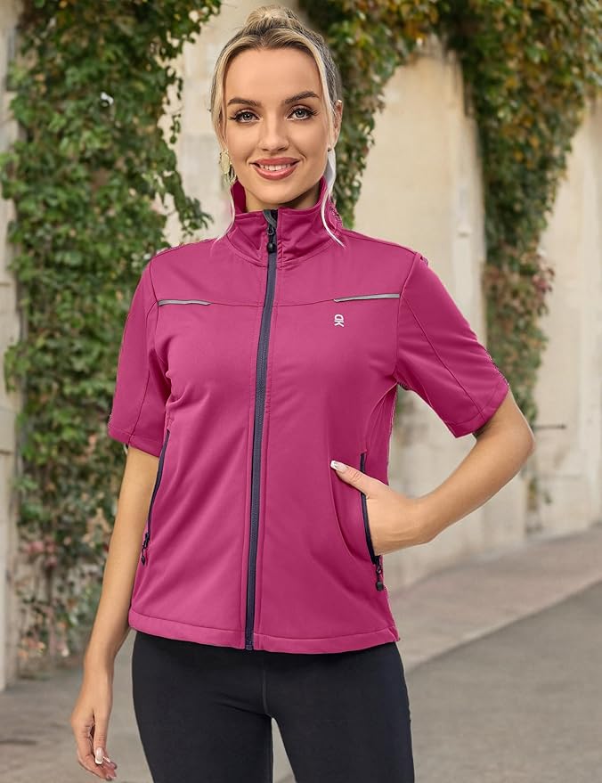 - OCCASIONS: Softshell golf windbreaker is suitable for travel, trail, running, outdoor hiking, camping, climbing, cycling, fishing, golf, traveling etc. Lightweight softshell short sleeve jacket can be worn as a mid layer on frigid days or an outer layer in mild cool weather.