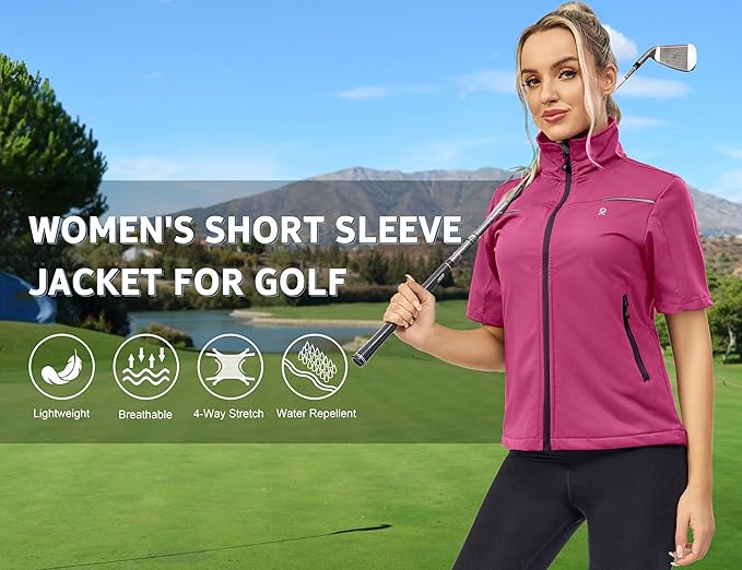 - OCCASIONS: Softshell golf windbreaker is suitable for travel, trail, running, outdoor hiking, camping, climbing, cycling, fishing, golf, traveling etc. Lightweight softshell short sleeve jacket can be worn as a mid layer on frigid days or an outer layer in mild cool weather.
