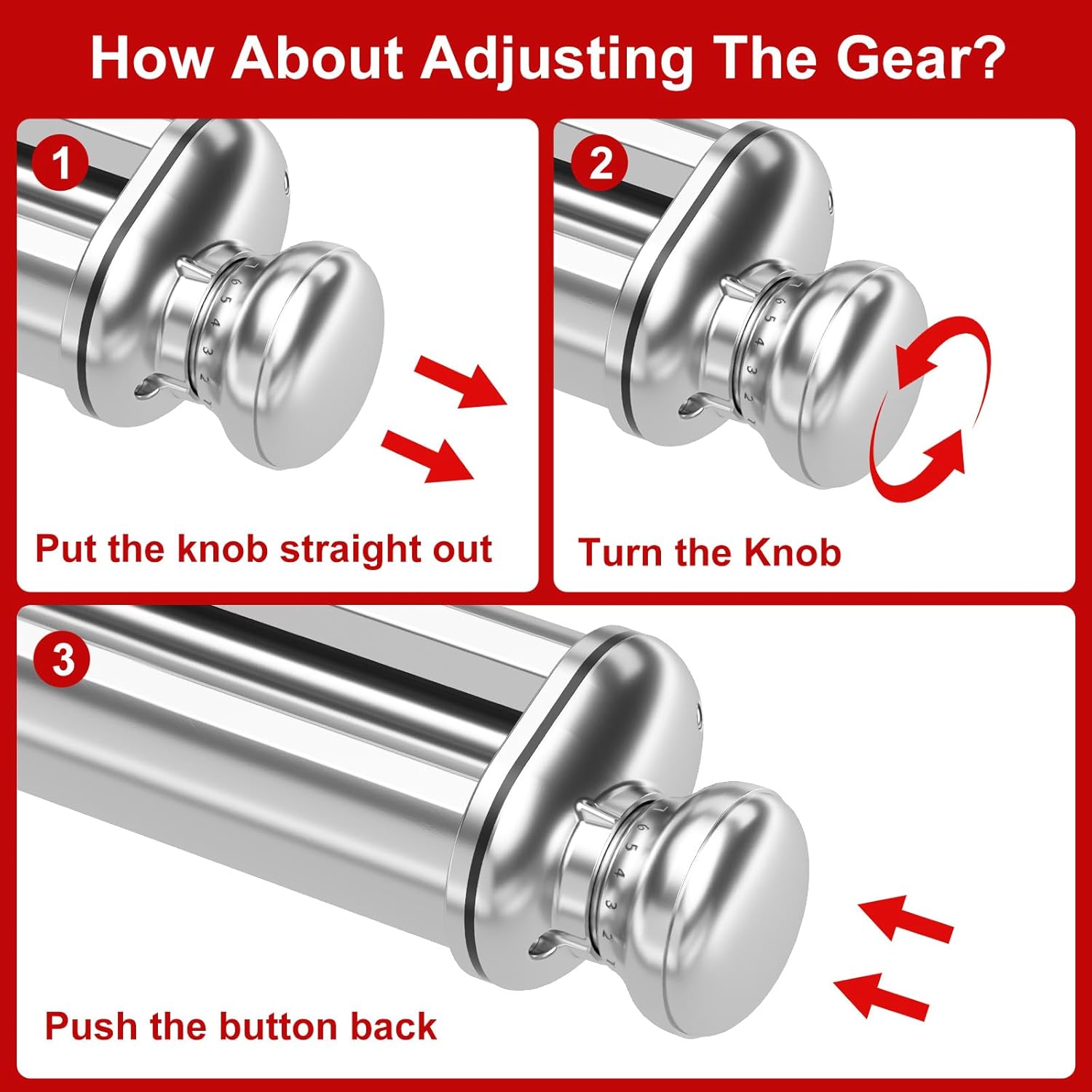 - 🍝【8 - position Adjustable Knob on this Pasta Maker Attachment】Whether you make delicate ravioli skins or thick fettuccine, the 8 - speed adjustable knob allows for precise control. It's so easy to use, just a simple turn of the knob and you can get the perfect thickness for whatever pasta dish you are creating. This pasta maker attachment for KitchenAid Stand Mixer gives you so much control over the texture of your pasta, making every batch turn out just the way you want it.
