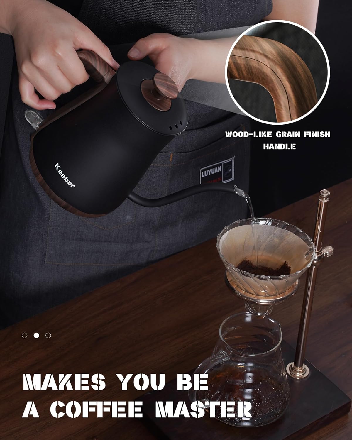 - 0.8MM PRECISE POURING - The gooseneck kettle design allows for precise water flow, making it easy to pour just the right amount of hot water over your coffee grounds or tea leaves. With its sleek and stylish design, this small electric kettle is sure to complement any kitchen decor.Size:8.38"L x 5.12"W x 10.53"H.