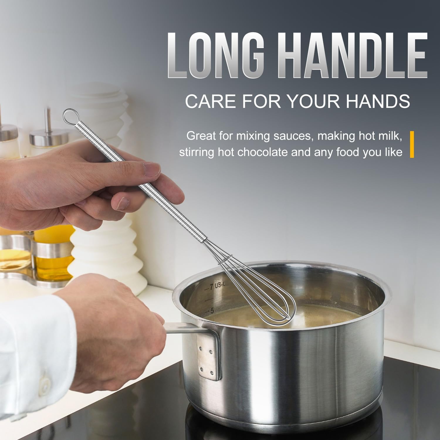 - SUPER PERFORMANCE AND MULTIPURPOSE - Eddeas Long small whisk can withstand temperatures up to 450℉.Eddeas small whisk provides you with powerful whipping and aeration.