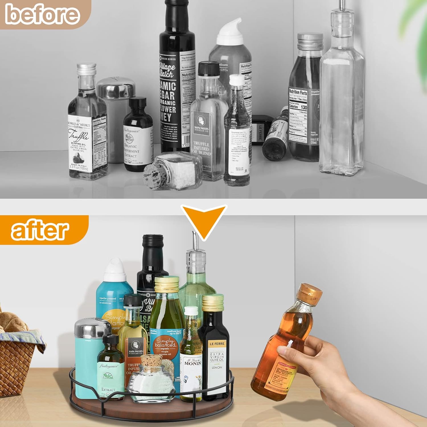 - Smooth 360° Spinning:Rotates in a circle for easy access to condiments, spices, seasonings, cans, cooking supplies smoothly and stably; built-in handles easy to grip and move