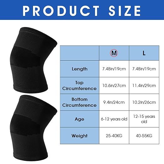 Kids Knee Sleeve Brace 1 Pair Children Knee Support Pad Breathable Elastic Soft Knee Protectors for Kids Child Girls Boys Teens Basketball Volleyball Sports (Medium)