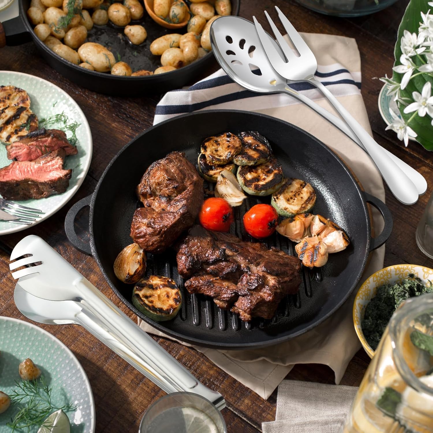 - Included Components : 4 Large Serving Spoons, 4 Slotted Serving Spoons, 4 Serving Forks, 4 Serving Tongs