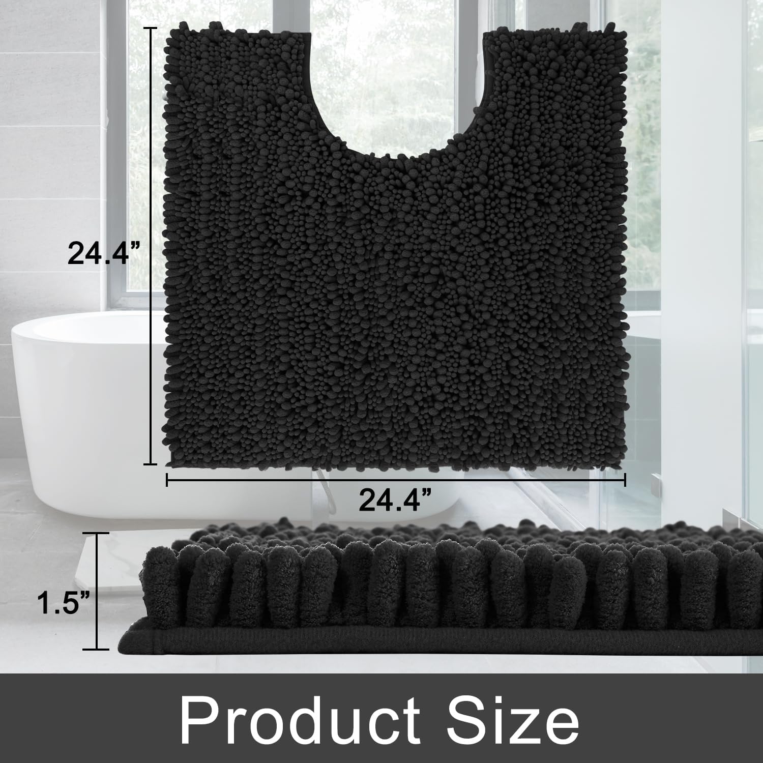 Yimobra Toilet Rug U Shaped Washable 24x20 Inch - Ultra Soft Absorbent Chenille Bath Rugs for Toilet, Quick Dry & Machine Washable, Non Slip Contour Bathroom Mat, Black