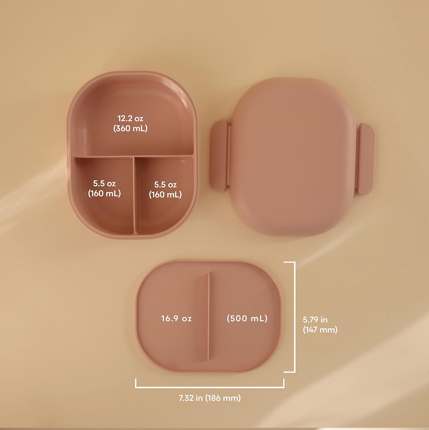 mushie Kids Bento Lunch Box | 3-Compartment & Removable Divider + Fork & Spoon Utensils | Great For Meals, School, Snacks On-the-Go | Dishwasher Safe (Blush)