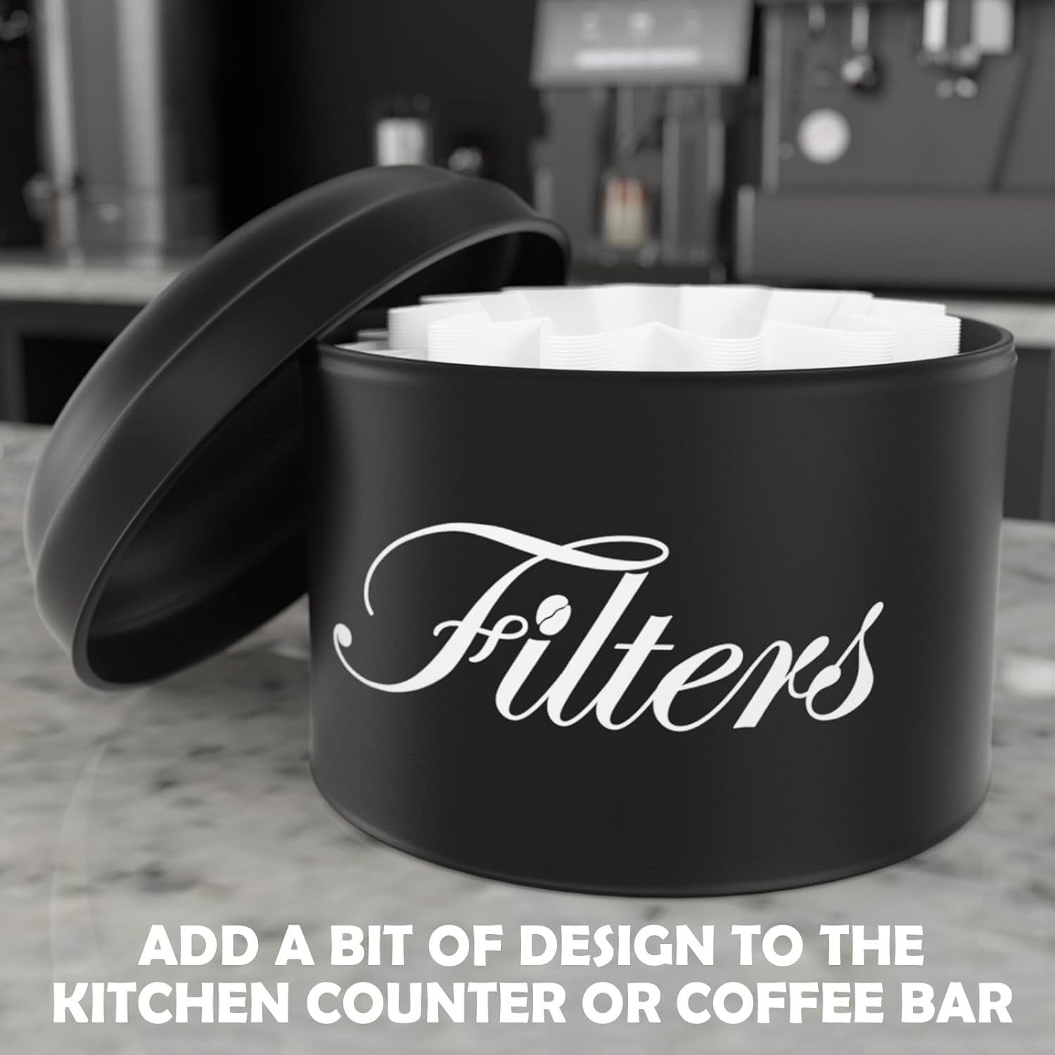 - 【BASKET COFFEE FILTER CONTAINER】 Our coffee filter holder with lid is capable of holding various sizes of round basket-shaped pleated filters commonly found in the market, a sizeable internal capacity is enough to store your daily coffee filters, it is a perfect addition to your coffee bar decor
