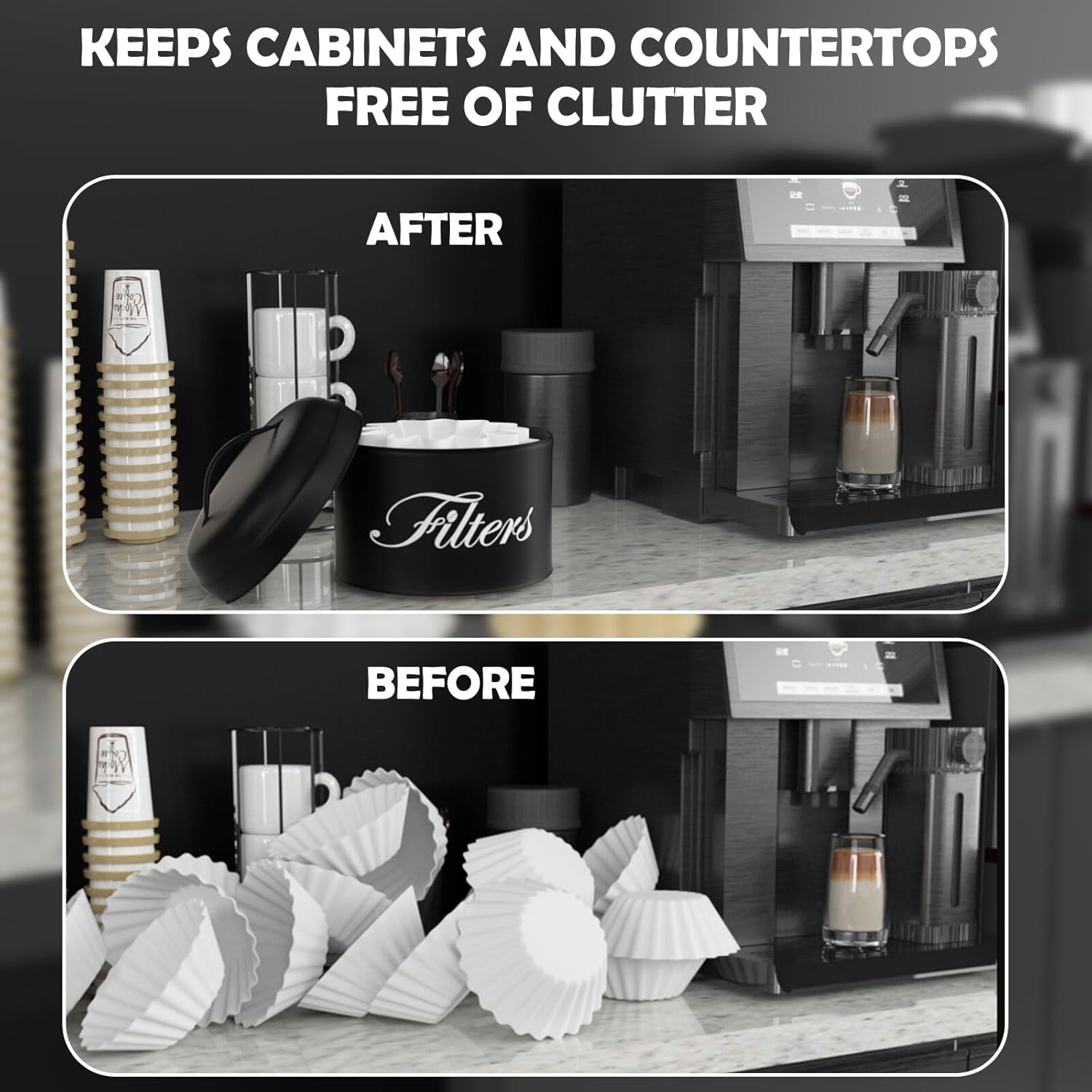 - 【ALL-ROUND PROTECTION COFFEE FILTER】 Our coffee filter organizer is equipped with a lid, which can keep dust and other nastiest from getting in your coffee filters. Particularly pet hair, and prolong the service life of the coffee filter. Created to make your home a neater and tidy place to be, put this coffee bar accessory in your cart today!