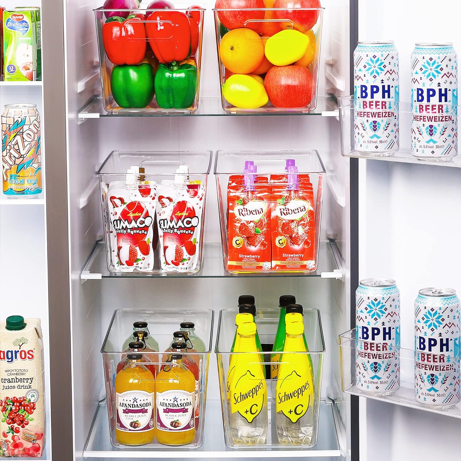 Vtopmart 6 PCS Clear Plastic Storage Bins, Pantry Organizer Containers with Handle for Refrigerator, Fridge, Cabinet, Kitchen, Countertops, Cupboard, Home Organization and Storage, XL