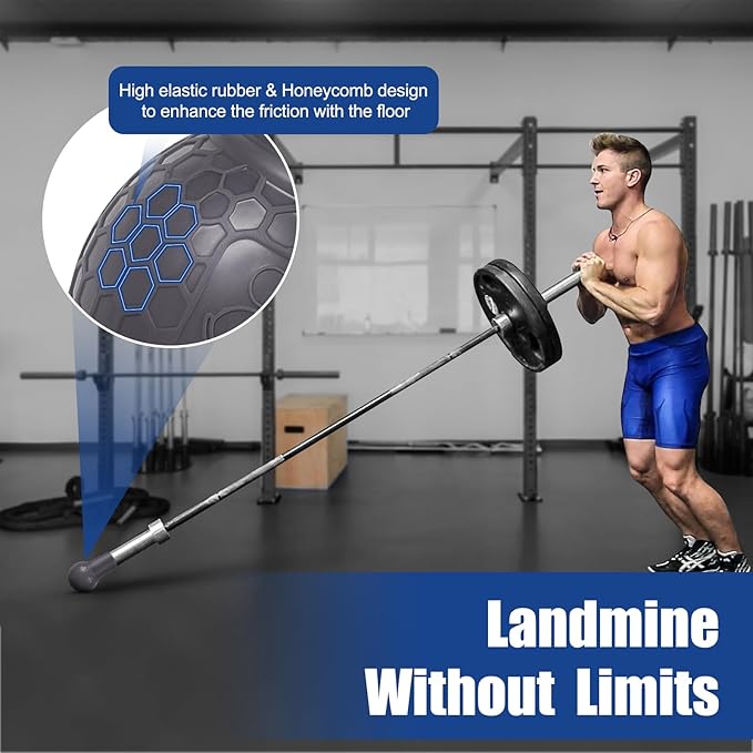 - 【Honeycomb Anti-slip Design】 The honeycomb texture design on the surface of the landmine enhances the friction with the ground. The inner wall anti-compression design of the landmine so that the barbell can fit the mine more stable and prevent it to slip off.Can be adapted to any site: wooden floors, tiles, lawns, rubber floors, carpets, concrete floors