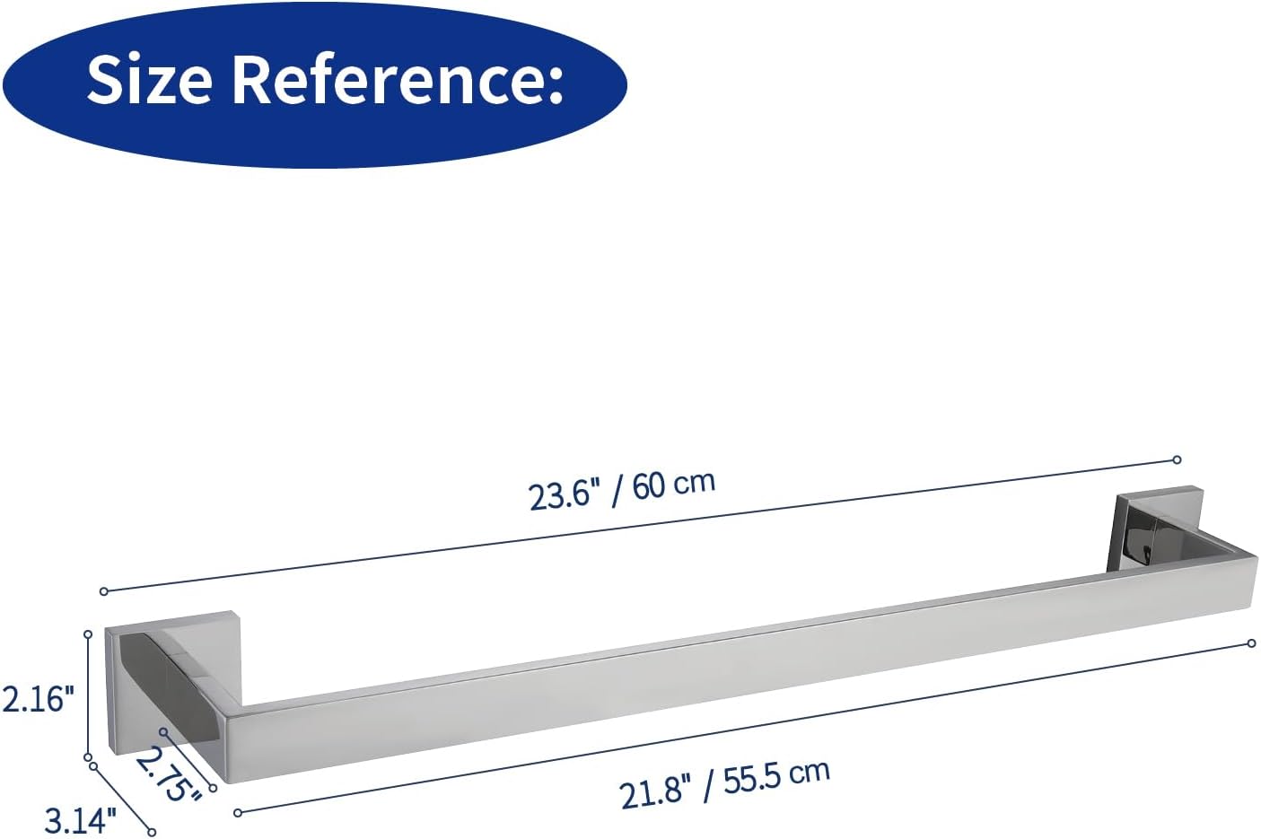 TASTOS 23.6 Inch Black Single Towel Bar Rack, SUS 304 Stainless Steel Bathroom Towel Bar Heavy Duty Towel Holder Kitchen Towel Rod, Wall Mount with Screws Towel Bar Rod Polished Chrome Finish