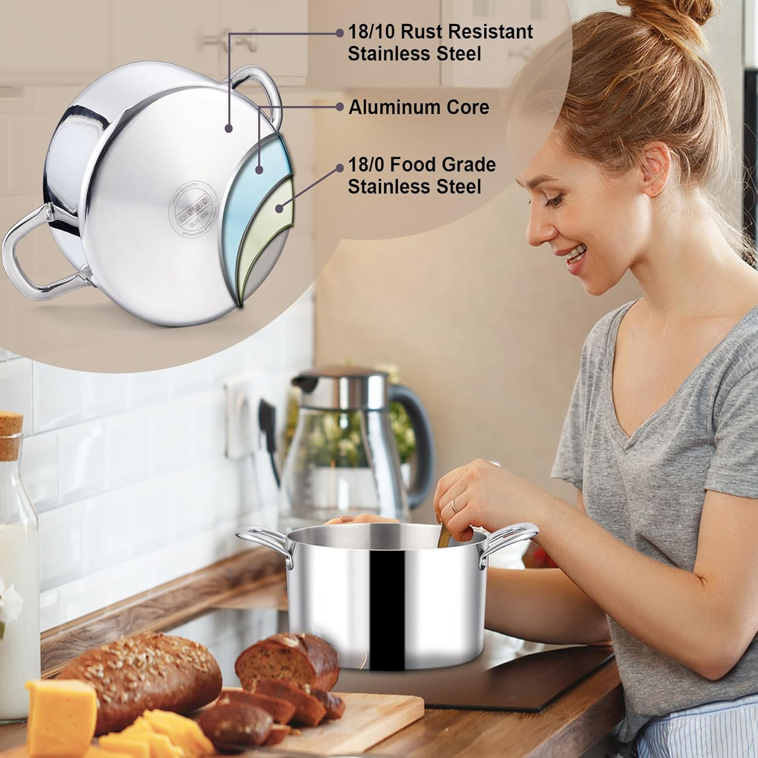 LIANYU 6QT 18/10 Stainless Steel Stockpot with Lid, Tri-Ply Heavy Duty Soup Cooking Pasta Canning Pot, 6 Quart Boiling Strew Simmer Induction Pot, Dishwasher Safe Cookware