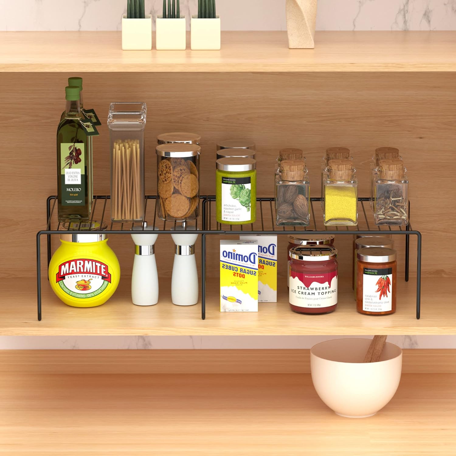 Redrubbit Cabinet Storage Shelf Rack, Expandable Metal Rustproof Kitchen Counter and Cabinet Shelf, Storage Rack Organizer Space Saver for Kitchen, Fridge, Cabinet, Bathroom, Black, Set of 6