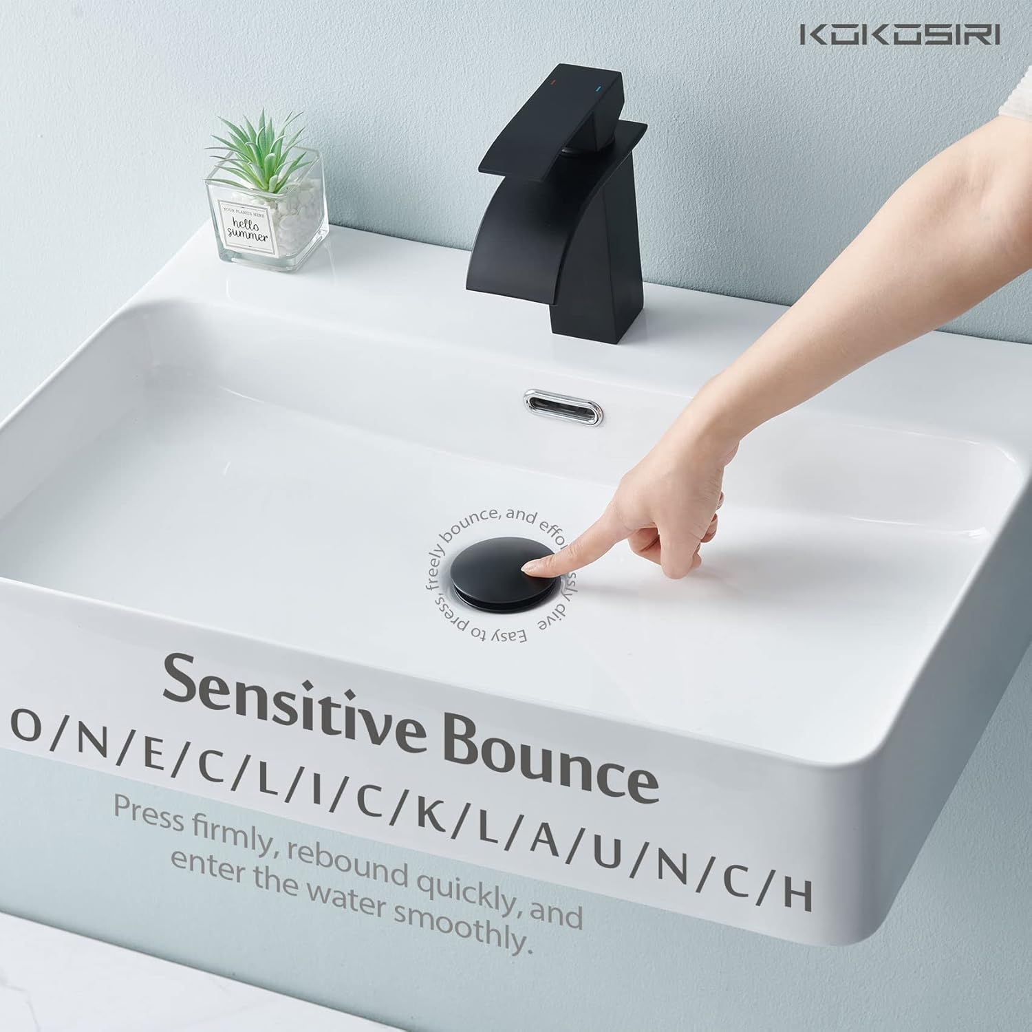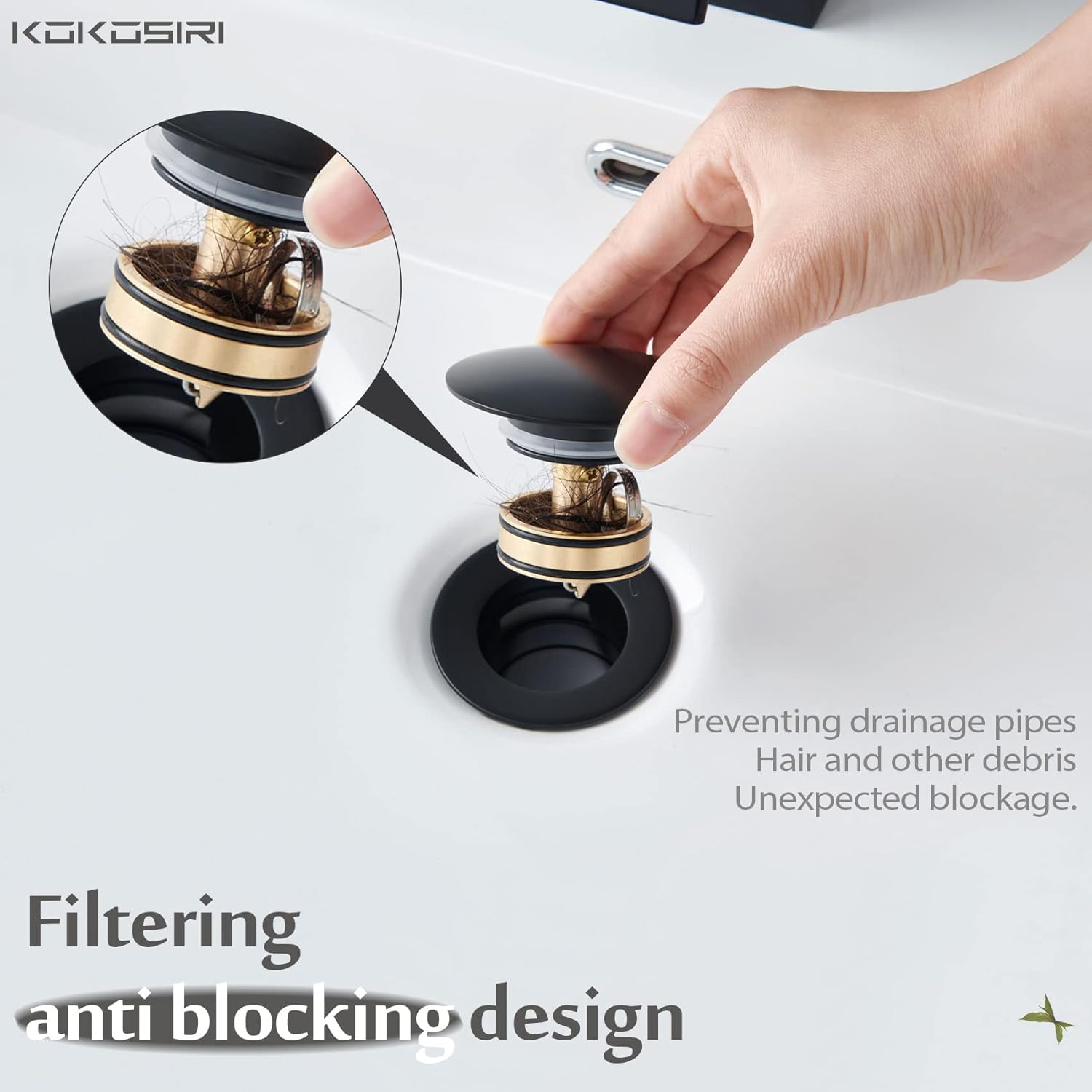 KOKOSIRI Bathroom Sink Drain with Detachable Hair Catcher, Matte Black Pop Up Sink Drain with Strainer Basket Anti Clogging for Vanity Vessel Sink with Overflow, C1001BK