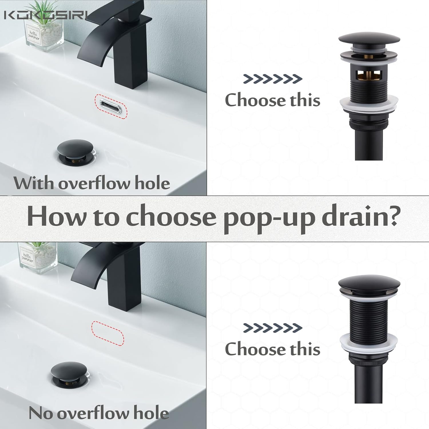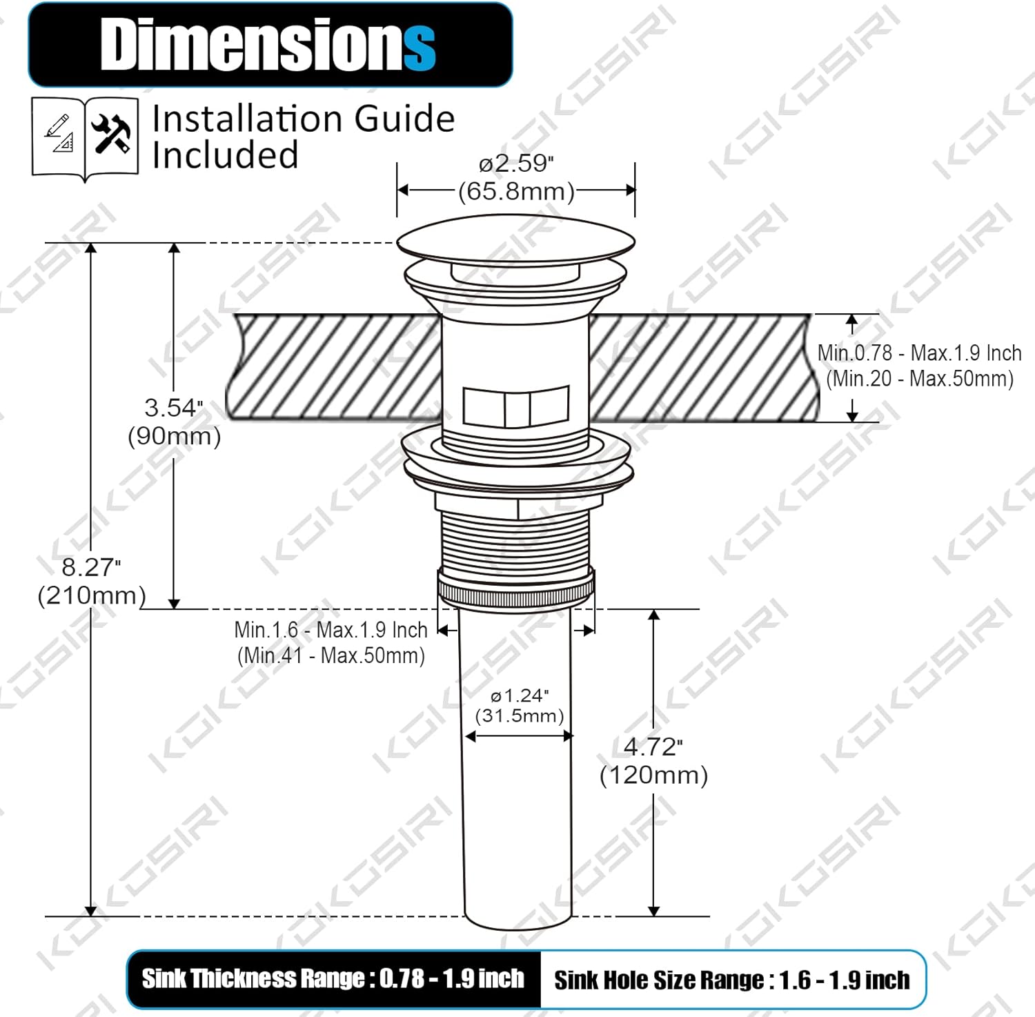 - ◄INSTALLATION REQUIREMENT ► The Bathroom Pop Up Drain is with OVERFLOW, you need to make sure your sink basin with OVERFLOW hole, the sink basin with 1 3/5"(min) drain hole