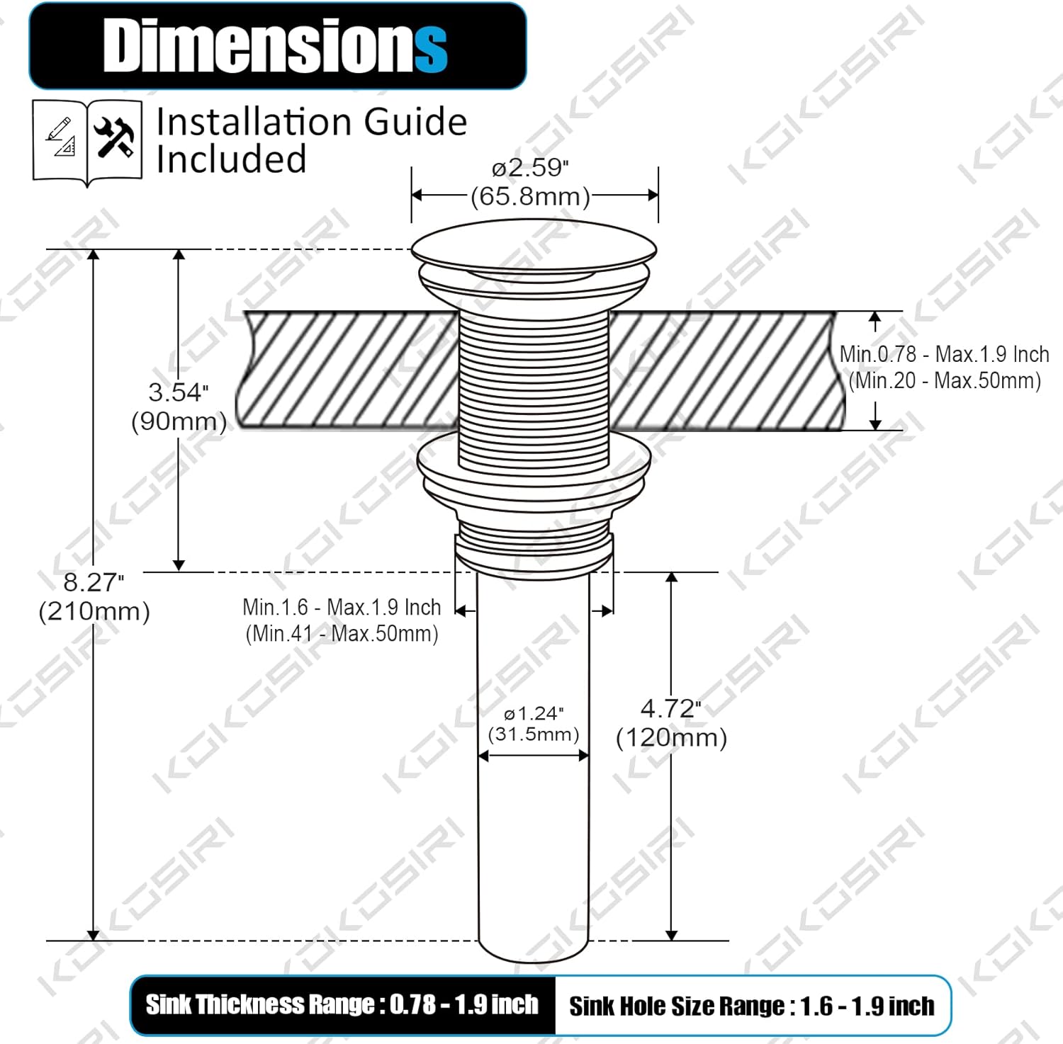 - ◄INSTALLATION REQUIREMENT ► The Bathroom Pop Up Drain is NO OVERFLOW, you need to make sure your sink basin WITHOUT OVERFLOW hole, the sink basin with 1 3/5"(min) drain hole