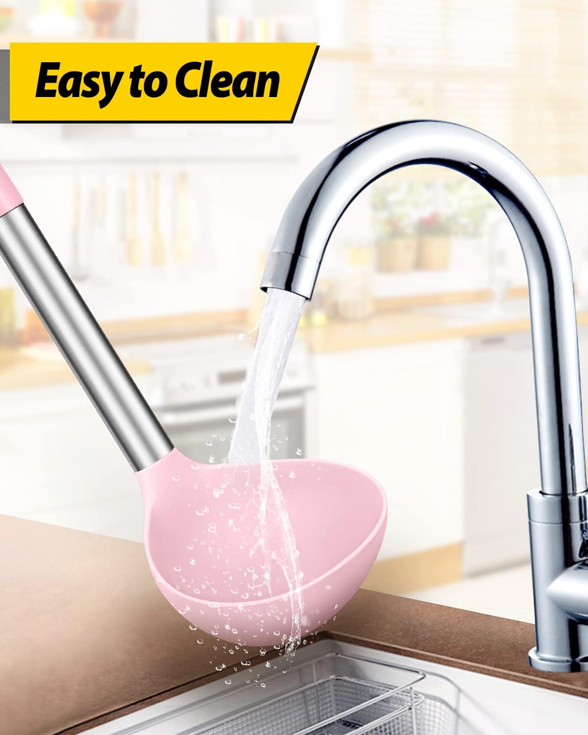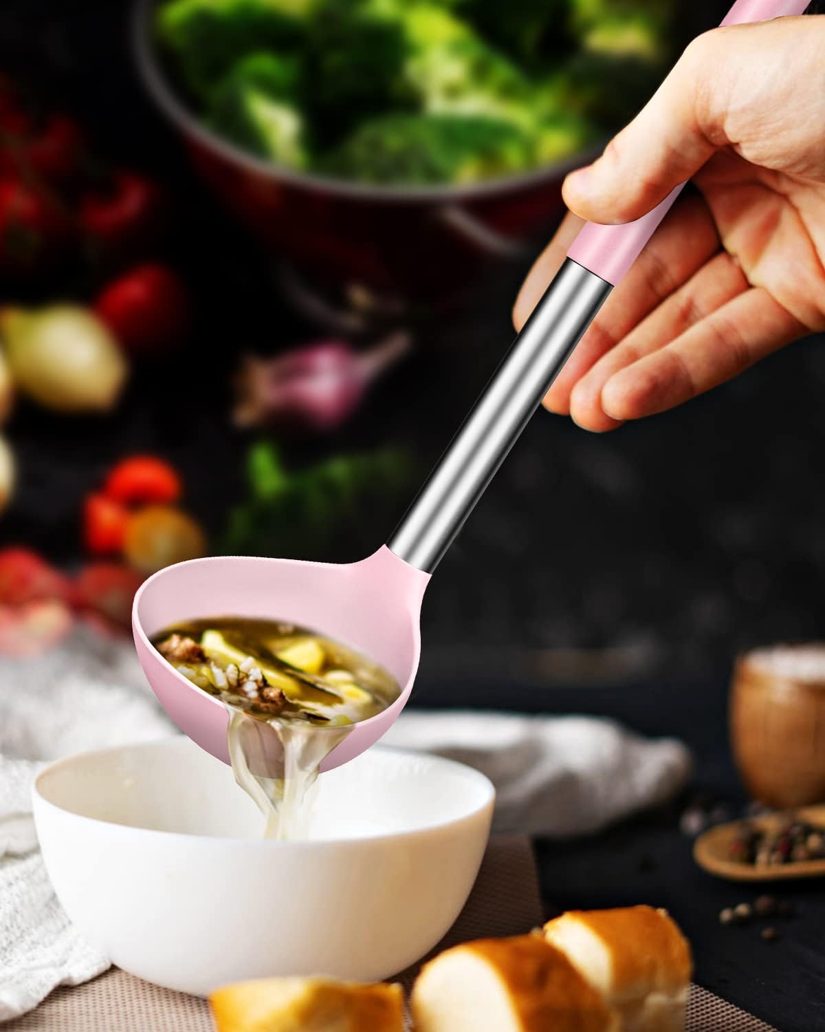 - More Safe and Healthy : Our kitchen ladle spoons are made of food-grade silicone, free of BPA;Even at high temperatures, there is no need to worry about melting or deforming;And the soft silicone head won't scratch the coating, it can better protect your pot
