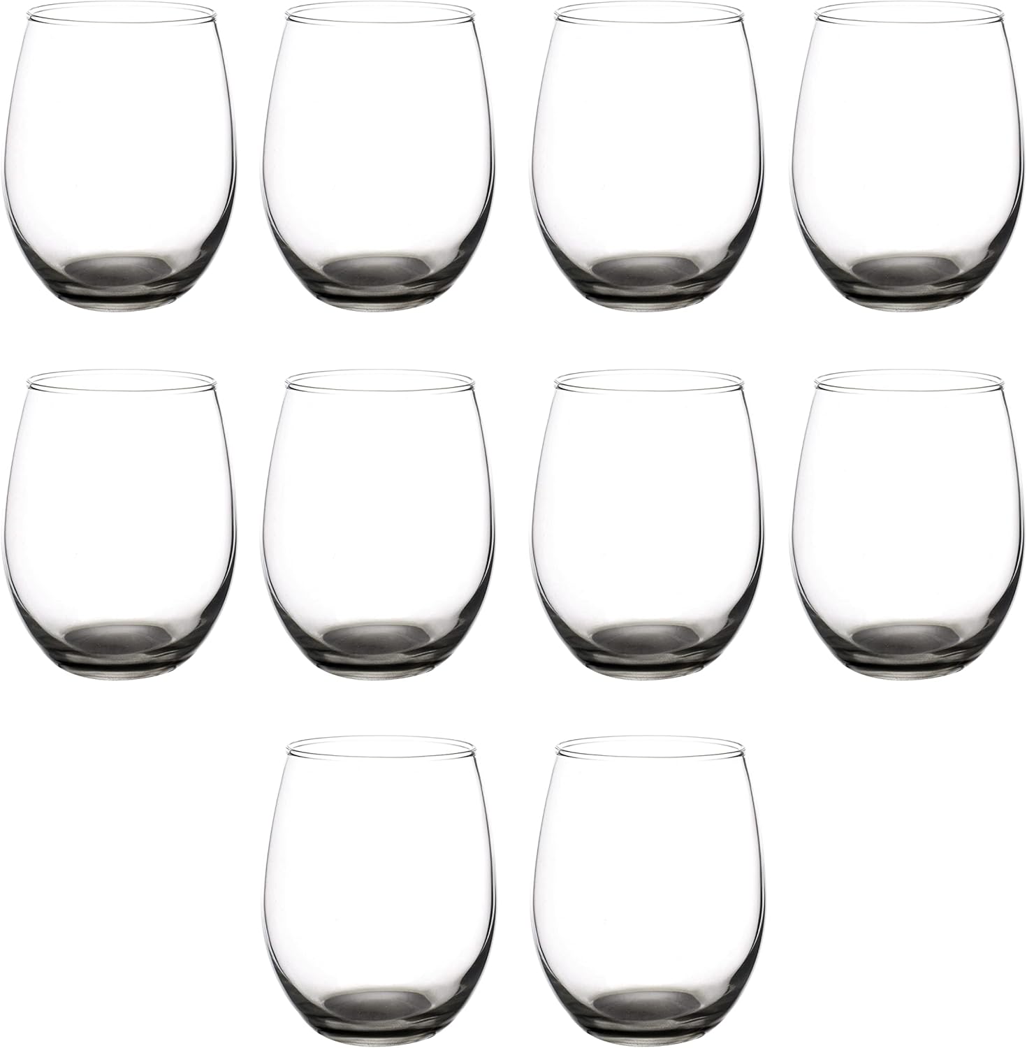 DISCOUNT PROMOS Stemless Wine Glasses in Bulk by ARC Perfection, 15 oz, 10 pack, Red or White Wine Glass Set, Black