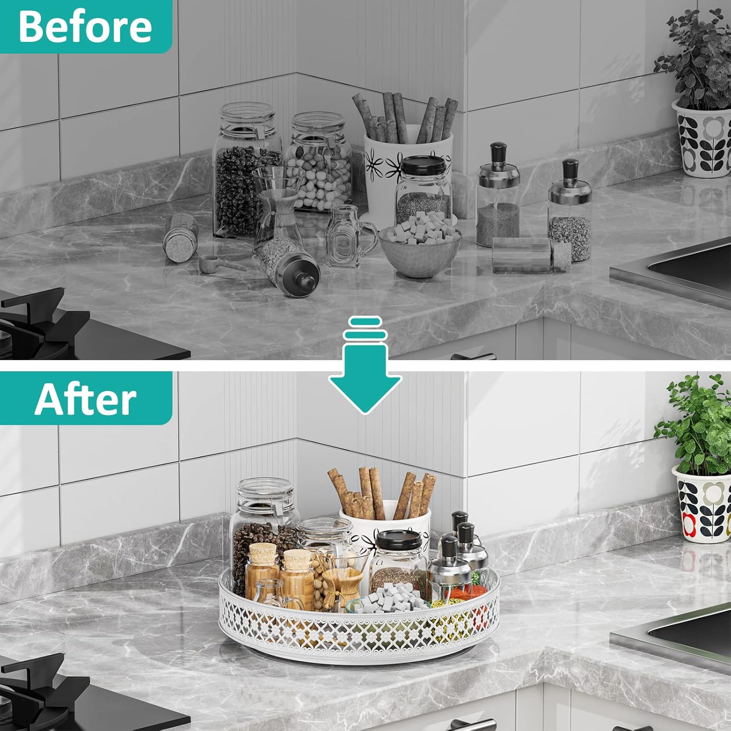 - Large Space Organizer:This lazy susan organizer measures 11 inch,providing more storage capacity in your deep cabinets,upper shelves and cluttered corner countertop , Making the most use of the limited space in your home to keep things neat and organized.