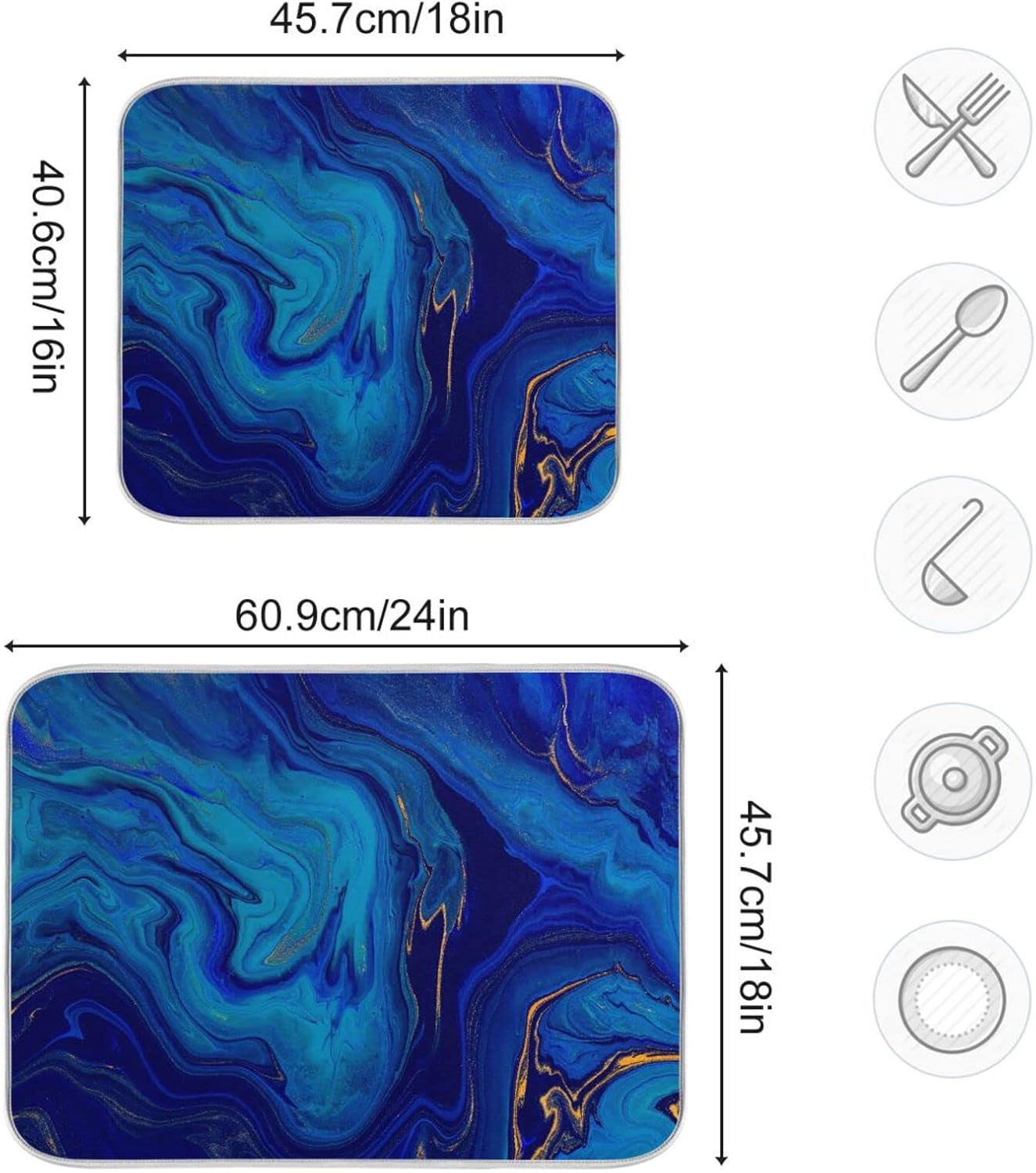 Super Absorbent Dish Drying Mat, Microfiber Fast-Drying Dish Mat, 16" x 18", Kitchen Dish Drying Pad, Navy Blue Gold Marble