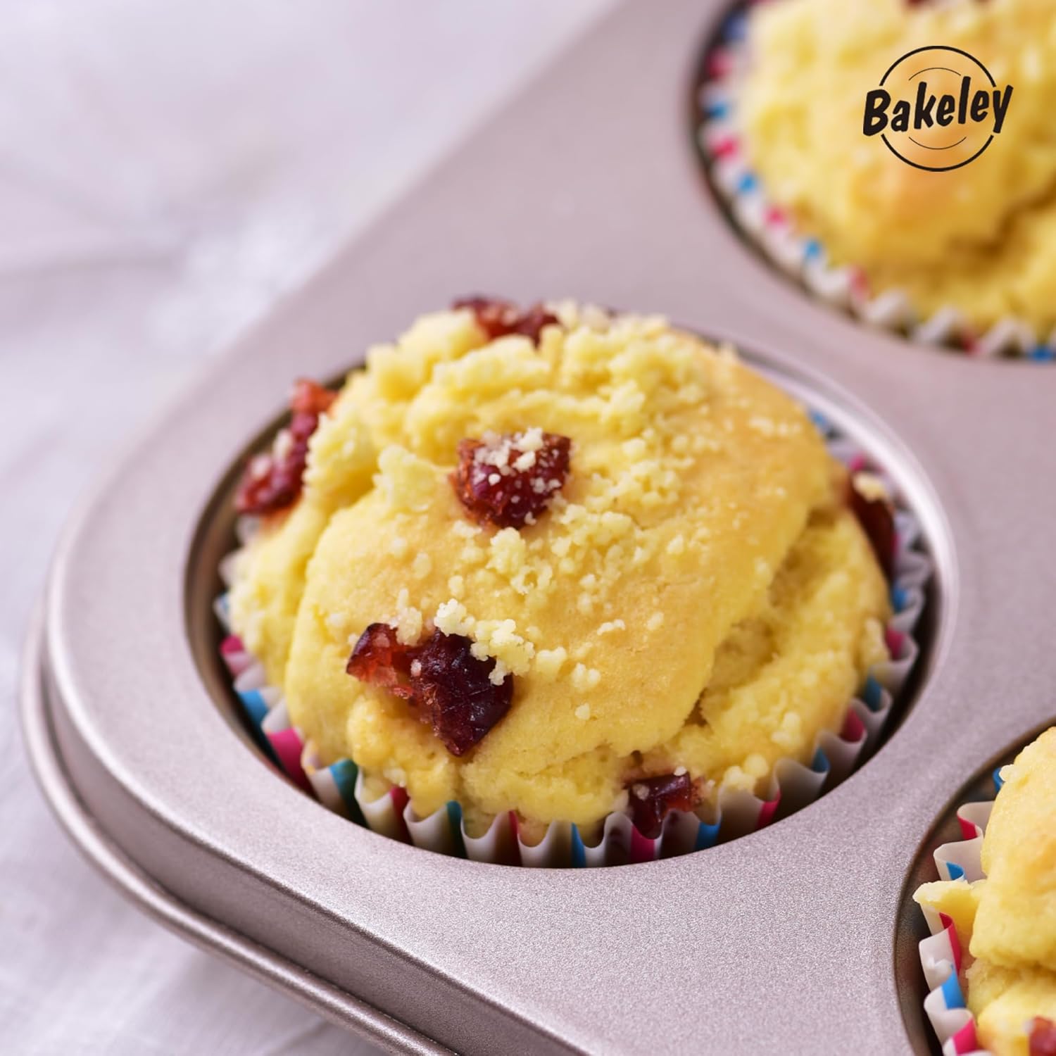 Muffin Cake Pan, 12-Cavity Non-Stick Cupcake Pan Bakeware for Oven Baking (Champagne Gold)