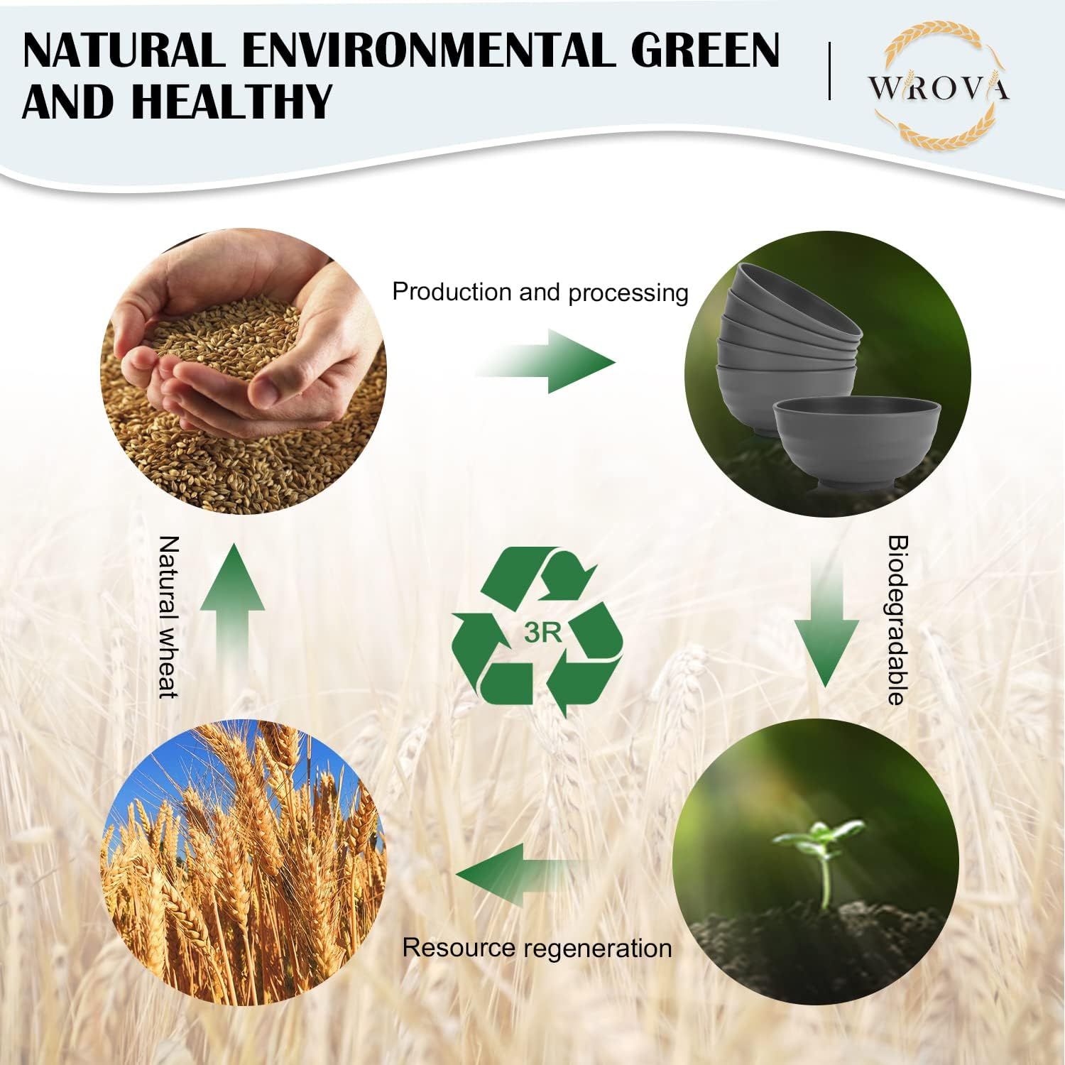 - 【Wheat Straw Materials】These bowls set is made of natural organic wheat straw fiber, the material is non-toxic,odorless.There is no plastics and harmful chemical materials.Very healthy and beautiful tableware for your family.