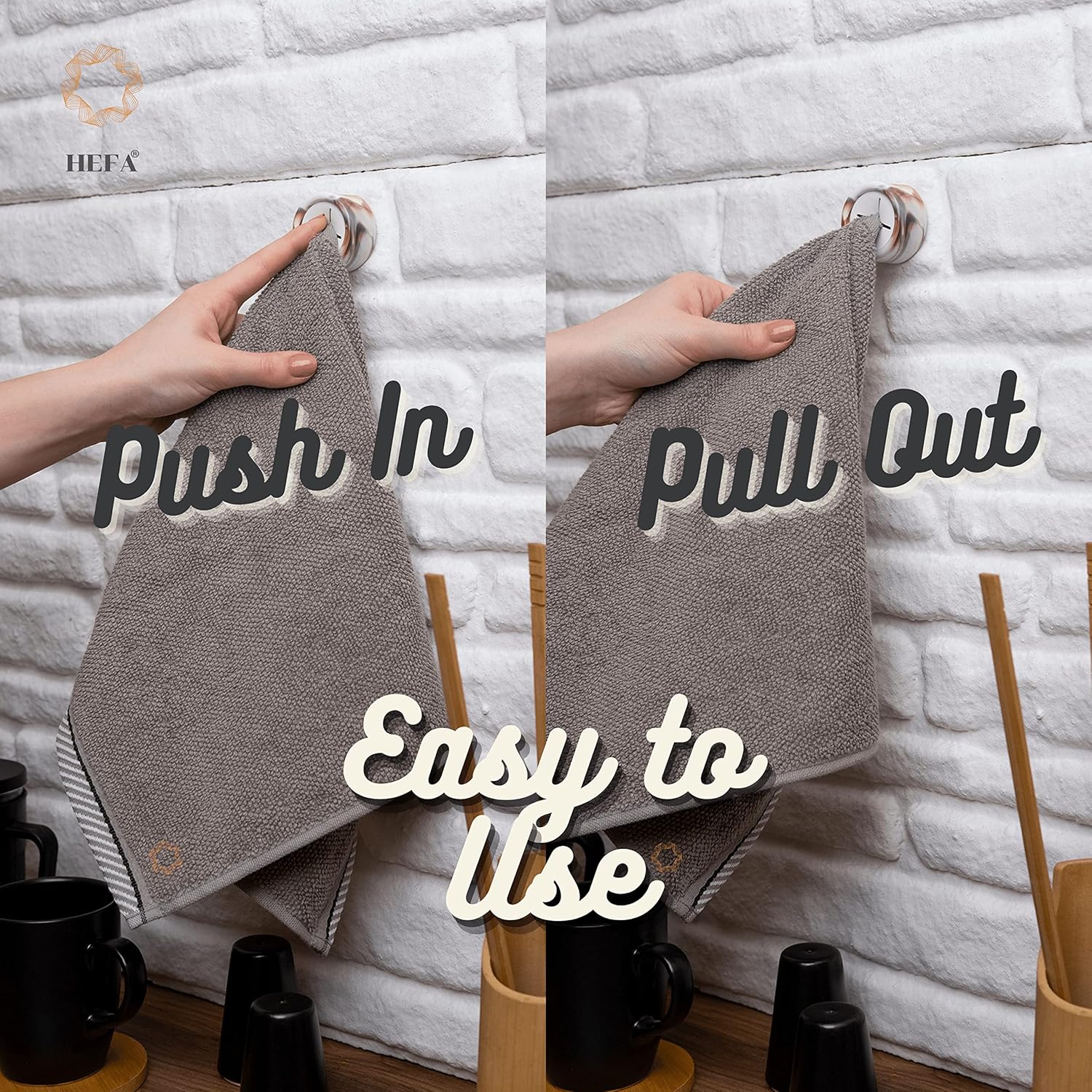 - Effortless Organization - Our practical towel hooks are versatile and easy to use. Hang hand towels, dishcloths, gloves, aprons, and more in your kitchen or bathroom. The silicone grips use a physical buckle principle to hold towels tightly without causing damage. Simply push and release to add or remove your towel.