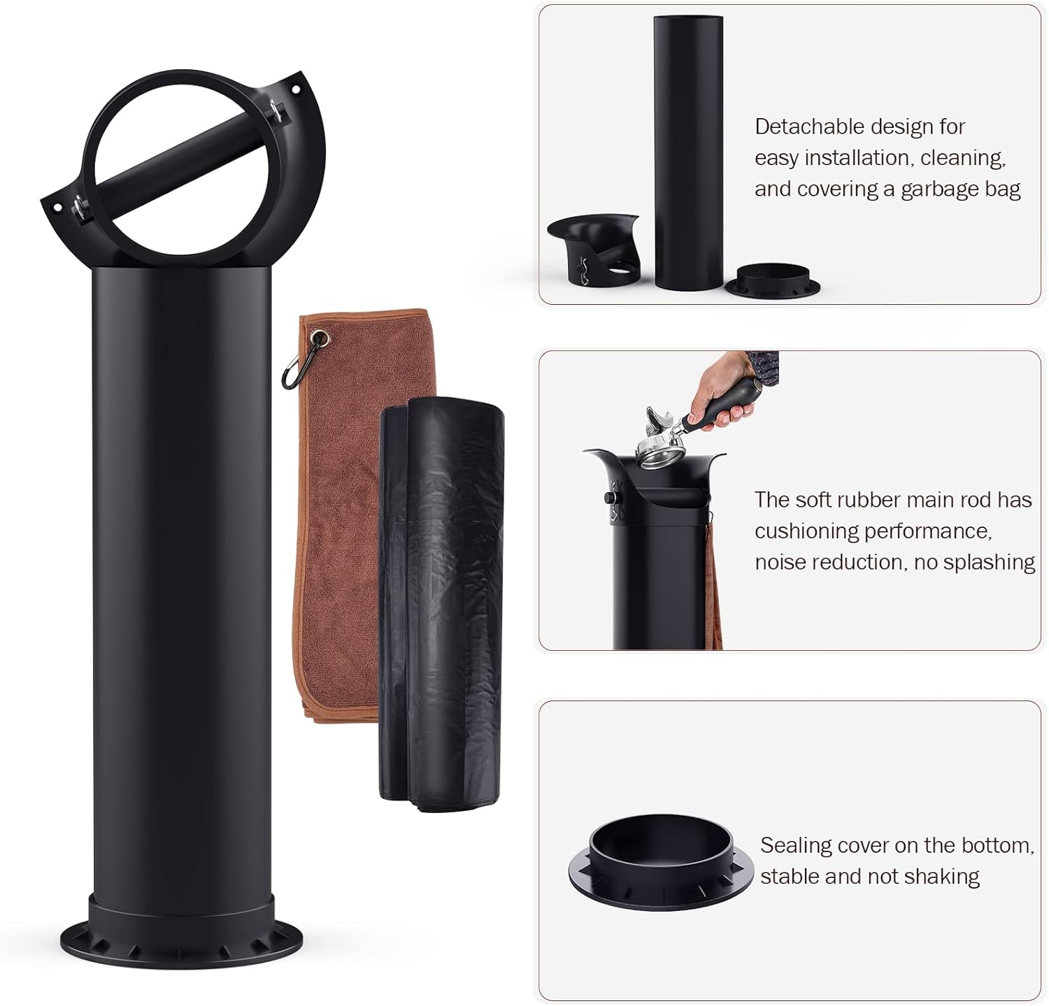 - ✅ 【Barista Helper】Built for commercial use. Made from plastic and rubber separated into three parts for easy cleaning, offering a cleaning cloth that attaches to either side of the knock bin via a carabiner hook.