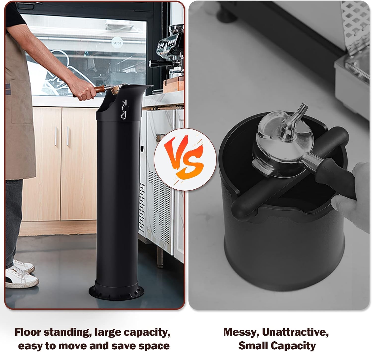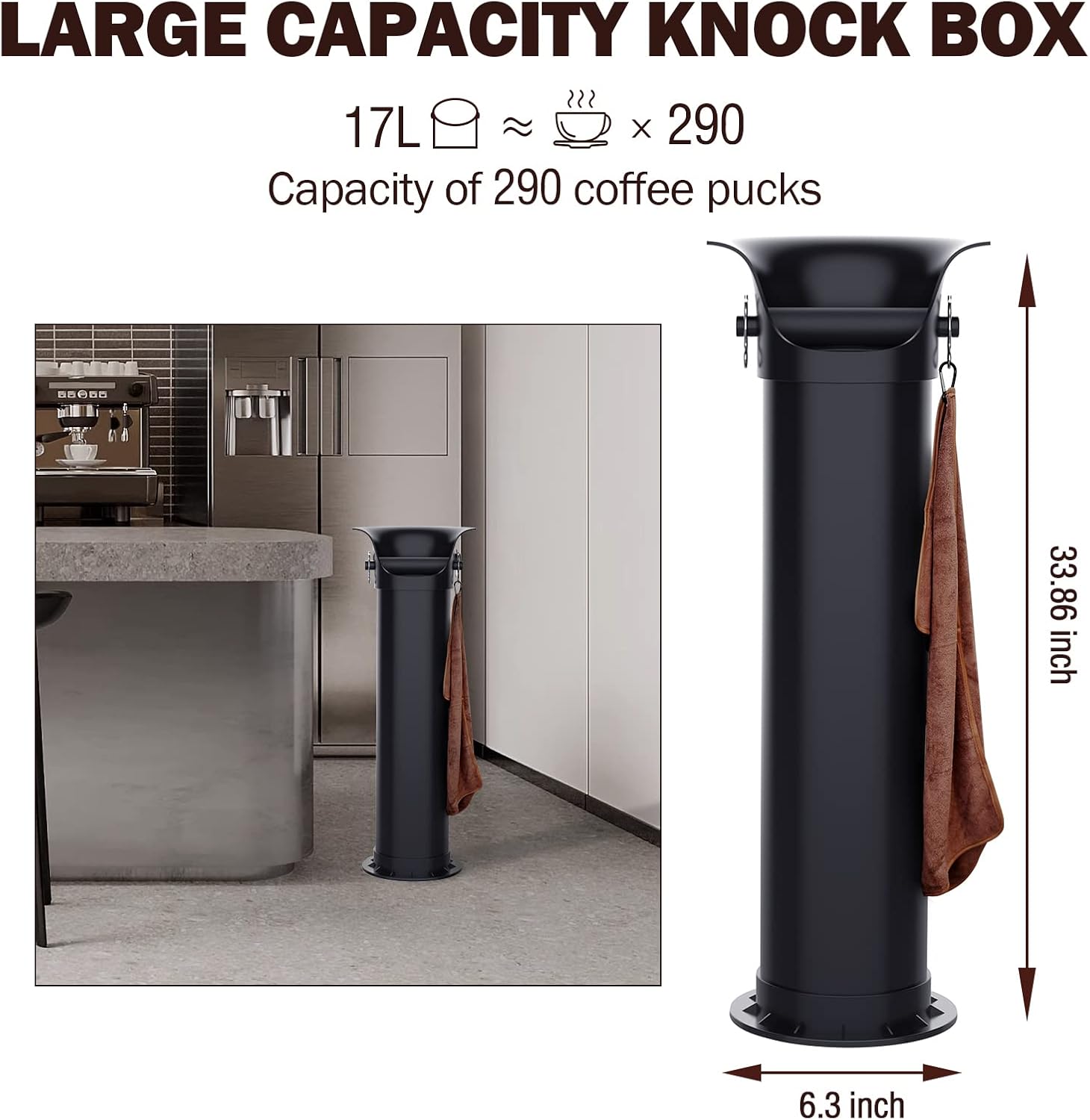 - ✅ 【Large Capacity】Our standing espresso knock box has about 17L Capacity which amounts to 290 cups of coffee. Large capacity allows for infrequent cleaning of coffee grounds, saving you time.
