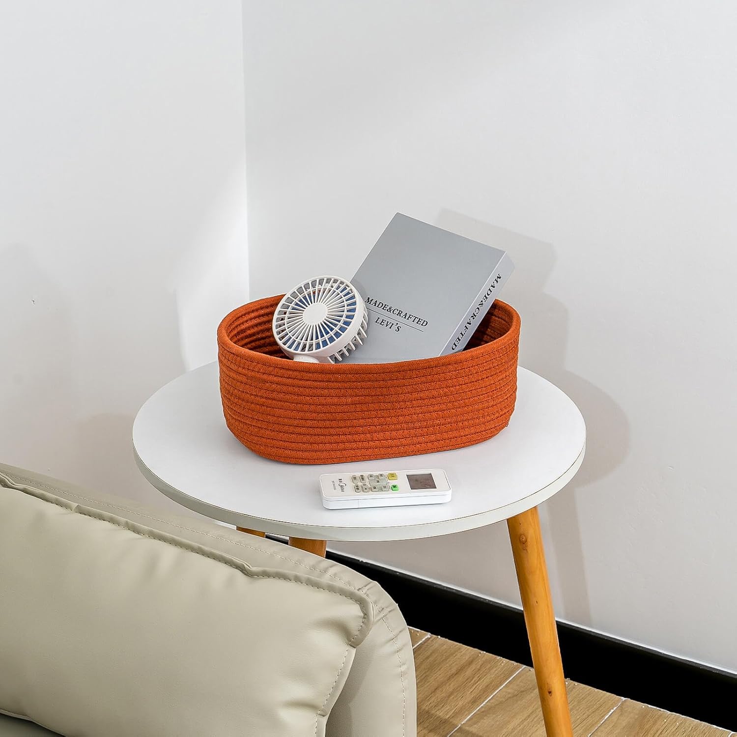 CubesLand Small Baskets, Storage Baskets for Organizing Shelves, 3 Packs Rectangular Woven Storage Baskets Natural Cotton Rope Storage Bins Closet Baby Nursery Baskets Empty Gifts Baskets Brick Red