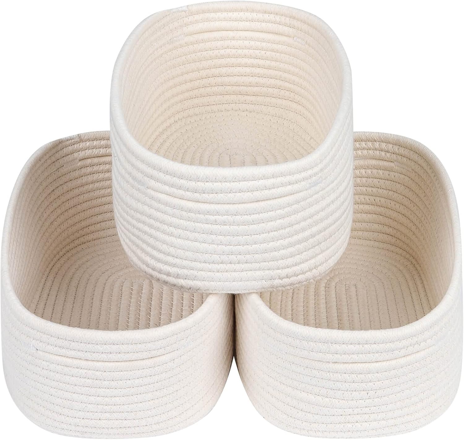 CubesLand Off White Small Storage Baskets for Shelves, Closet Organization Storage Bins Empty Gift Basket Baby Nursery Woven Baskets for Organizing, Rectangular Clothes Closet Shelves Baskets 3 Packs