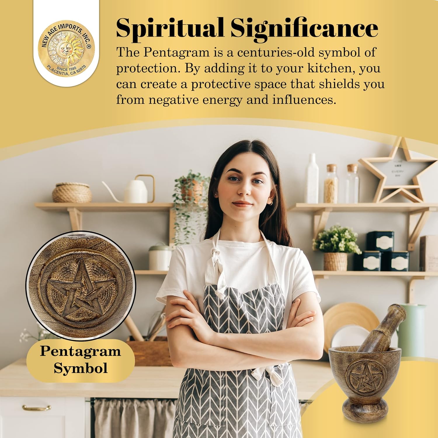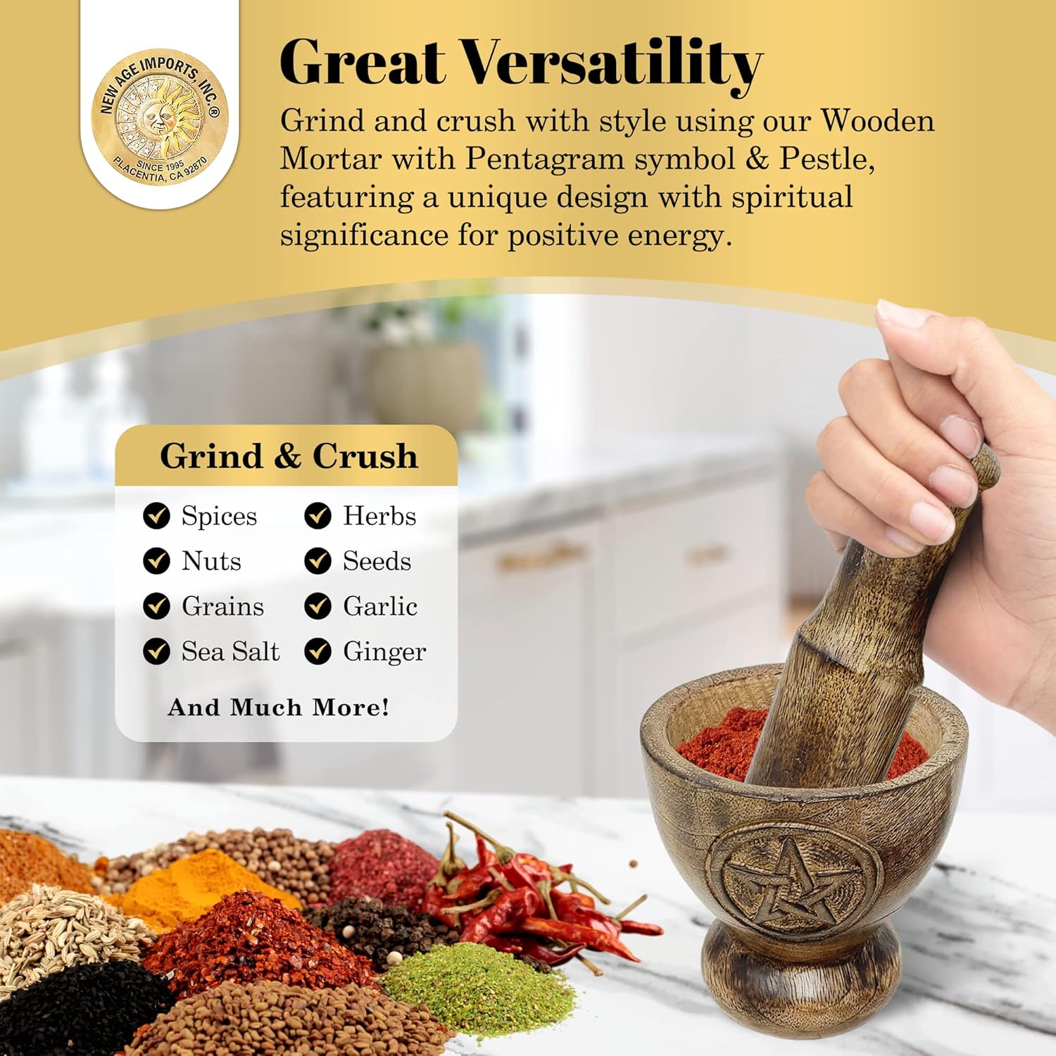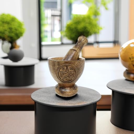 - 🌿Great Versatility: Your brand new Pentgram wooden motar and pedestal simplifies your everyday life. Grind and crush with style using your wooden mortar with pentagram symbol & Pestle featuring a unique design with spiritual significance for positive energy.