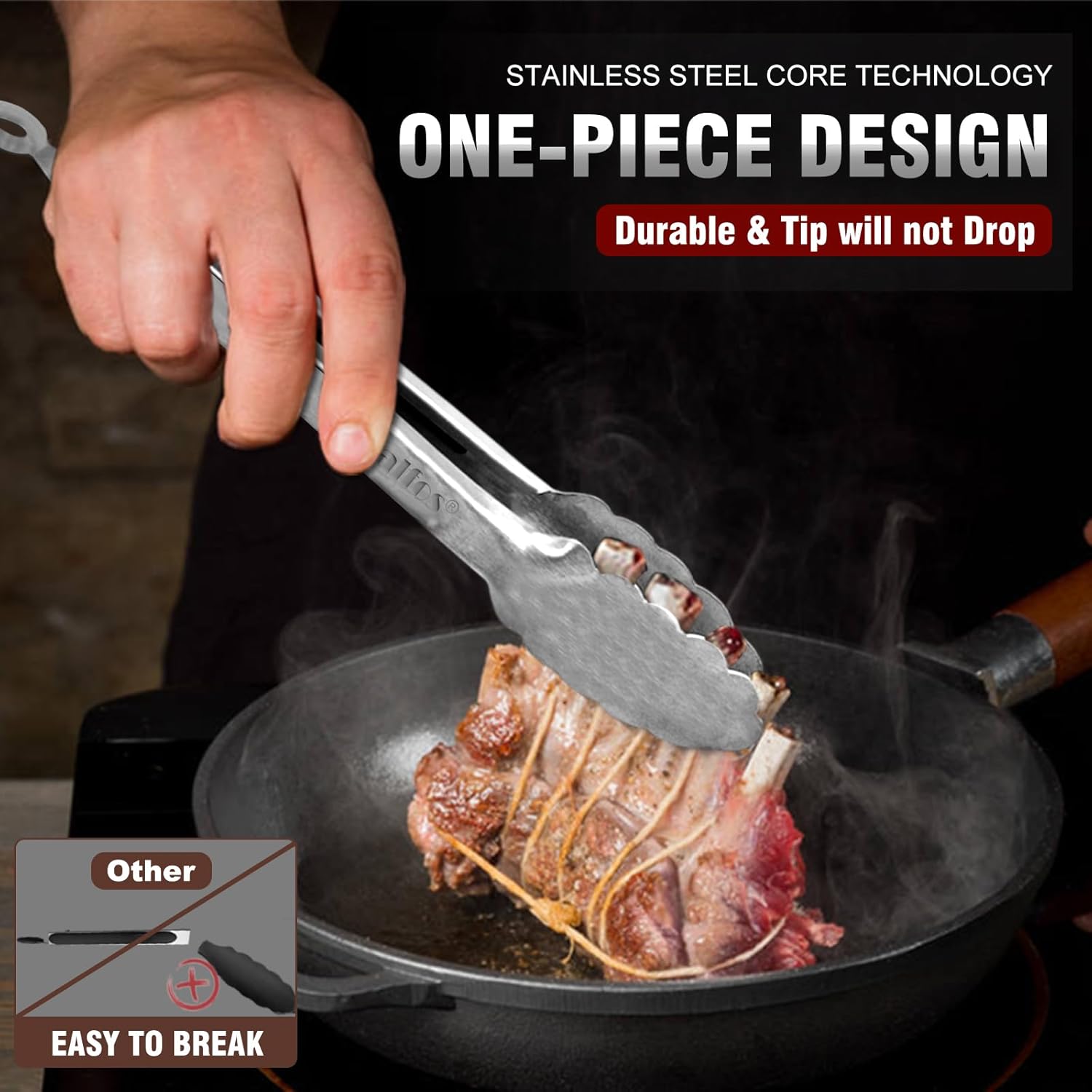 - ERGONOMIC HANDLE DESIGN AND HEAT RESISTANT-The handle is full metal ,great for thumb rest,and ensures handle grip and control.The metal tong head is super heat resistant.Easy to rinse, dishwasher safe and easy to clean.