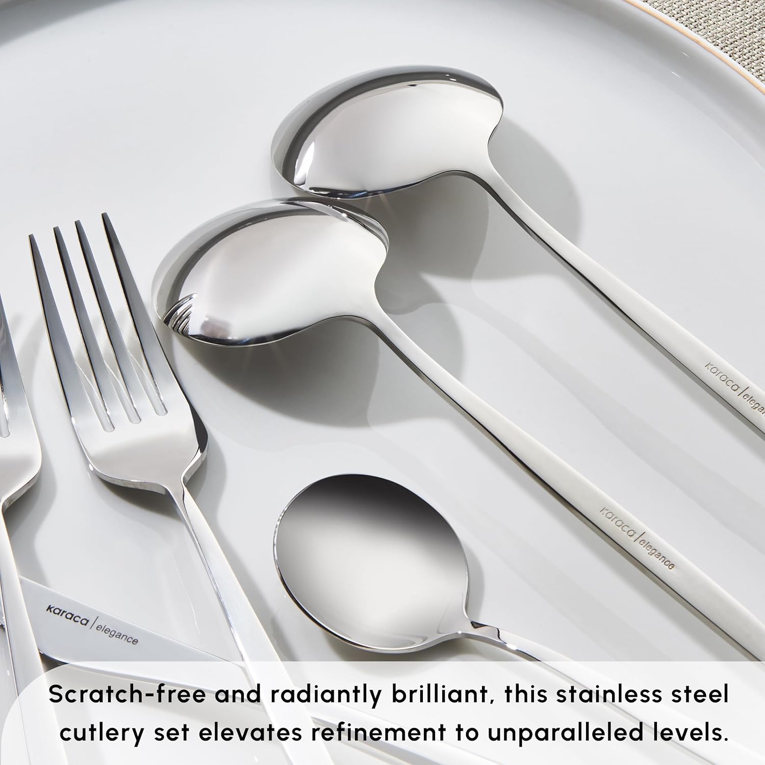 - Exceptional Quality: Each piece in the Karaca cutlery set is designed with extra heavyweight quality, making them sturdy and almost impossible to bend. This isn't just cutlery; it's a statement of premium quality and craftsmanship that you'll feel with every bite you take.