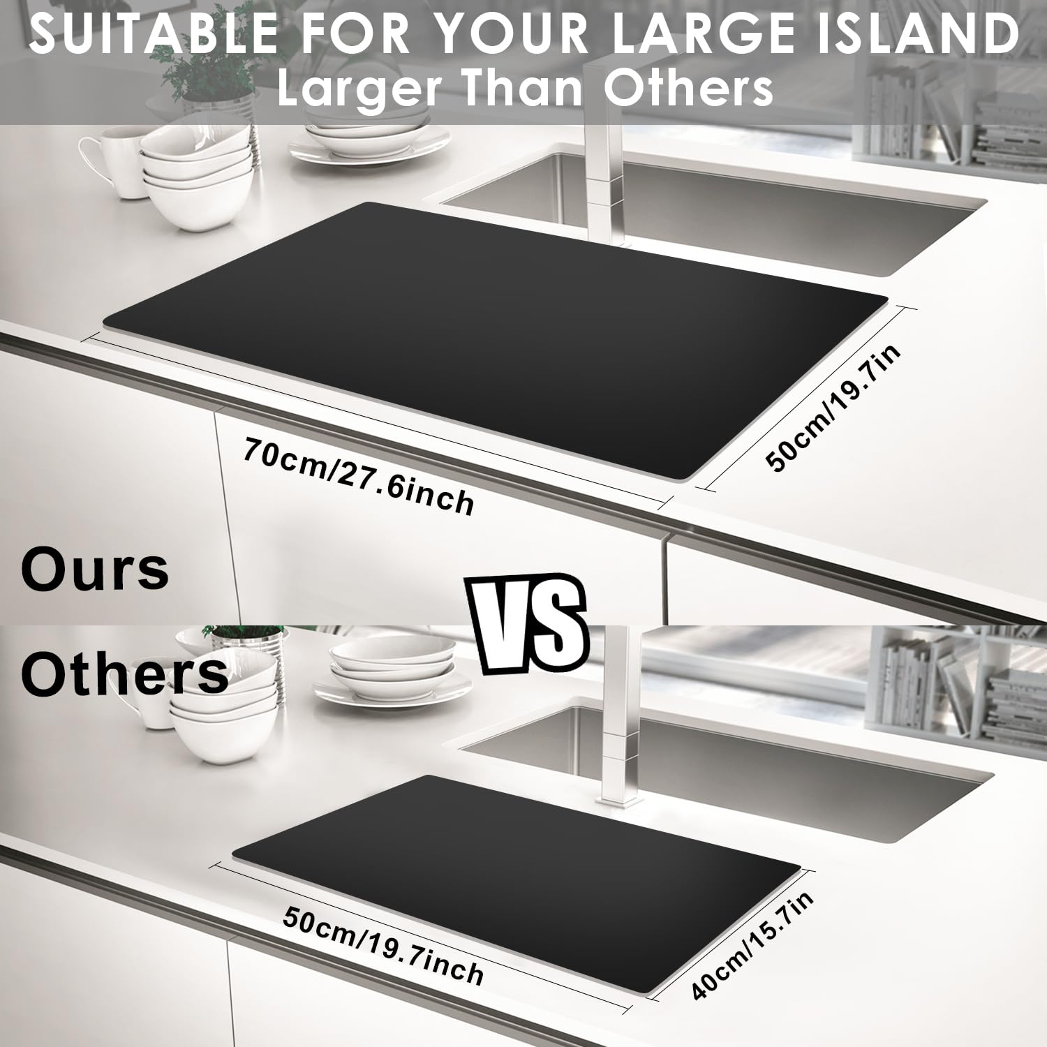 - 🍳【 100% Safe Extra Large Silicone Mat】:Sized at 27.6'' x 19.7' x 0.059" (Length x Width x Thickness), this large silicone mat is made of 100% food-grade eco-friendly silicone, BPA free, easy to cut, double-sided available, the black silicone countertop mat is thicker than the average, more durable, larger use area, enough use it as a silicone placemats for kids or workbench mat.