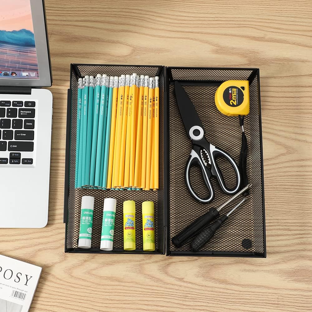 Silverware Organizer ,Mesh Cutlery silverware Tray for Drawer,Tool tray organizer,Utensil Flatware Tableware Organizer for Kitchen,Office,with Non-slip,Fits Standard Drawer,(6x12 IN) 6PSC,Black