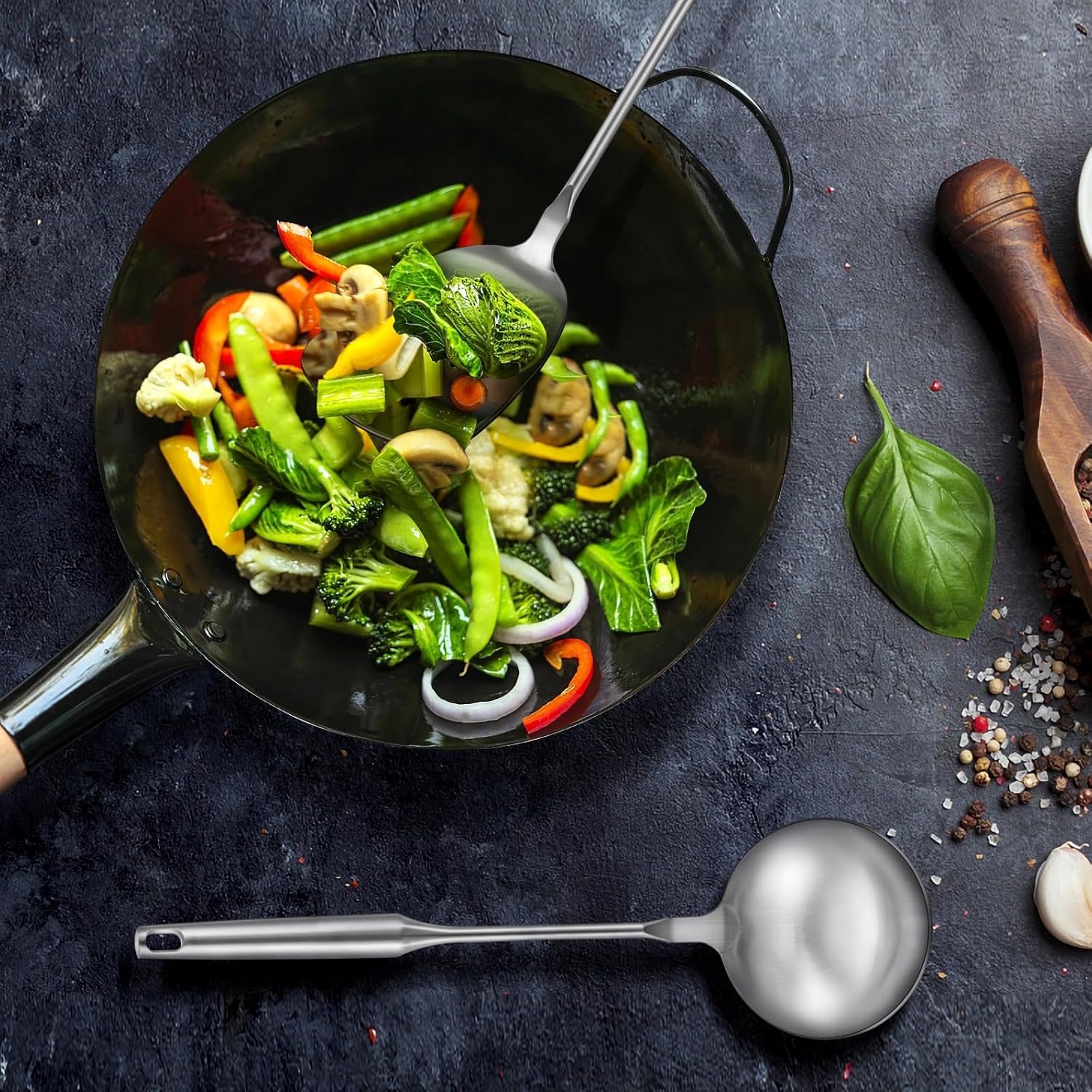 Wok Utensils Tools for Carbon Steel, Stainless Steel 2-Pieces Wok Spatula Soup Ladle Set, Wok Tools Professional Set, Heat-Resistant Handle, Ideal for Gift