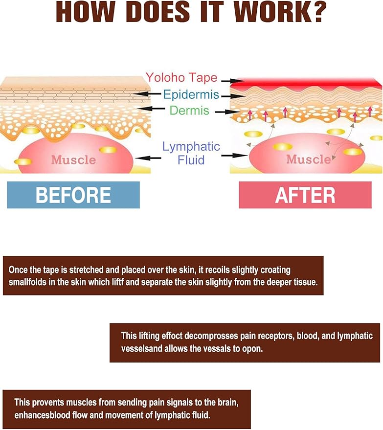 - Enhanced Kinesiology Performance: Kinesiology tape roll helps improve local blood circulation, promote lymphatic drainage,relieve soft tissue swelling and pain,and support and stabilize muscles and joints.
