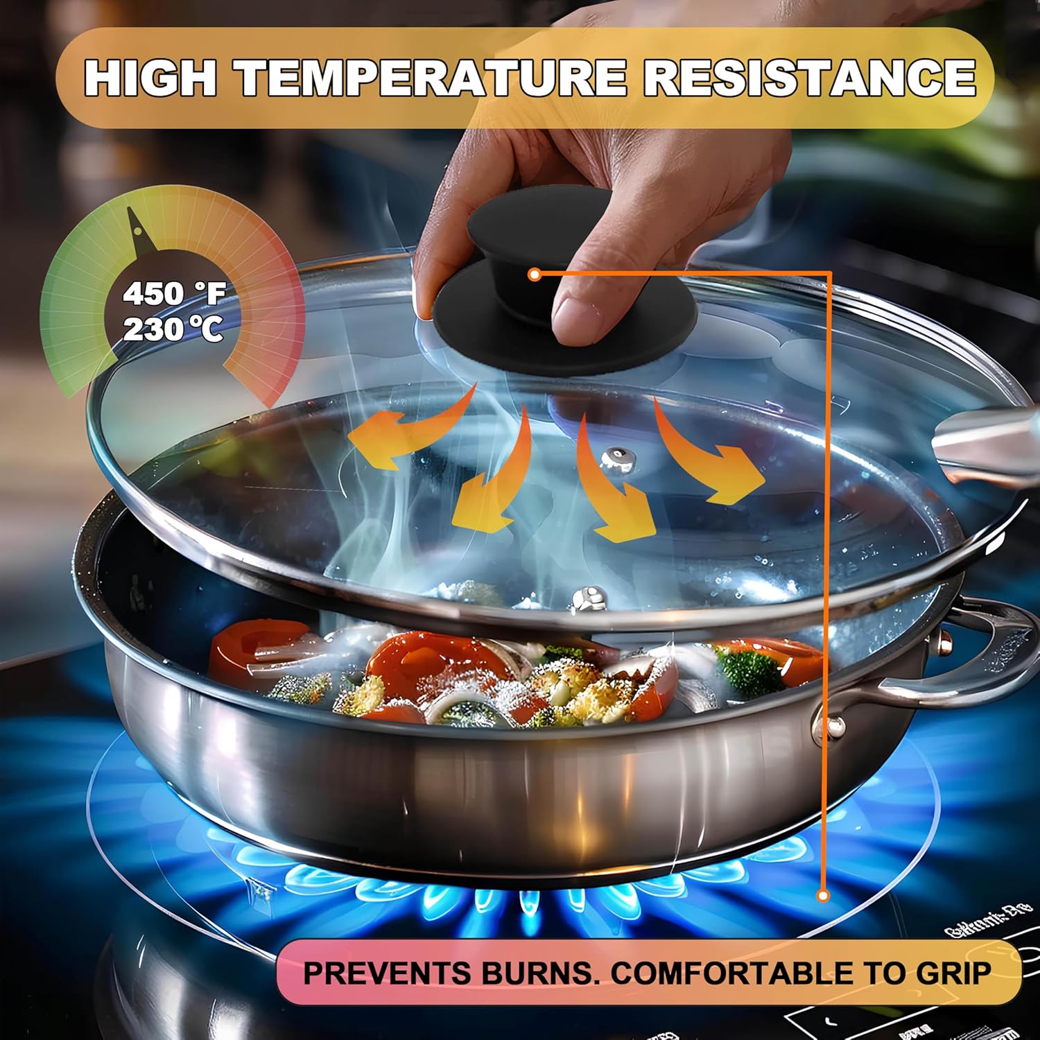 - 【 PREMIUM QUALITY SILICONE 】: Lerykin silicone pot lid knob is crafted from high-quality food-grade silicone, ensuring safety, durability, and long-lasting performance. It is designed to withstand high temperatures without deforming or cracking, providing a reliable and safe option for your kitchen.