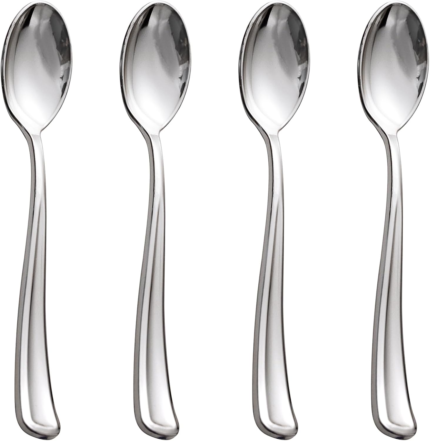 - STURDY AND DURABLE: These Plastic silver spoons are sturdy & durable & smooth surface, you can use them to enjoy food at parties without worrying about breaking